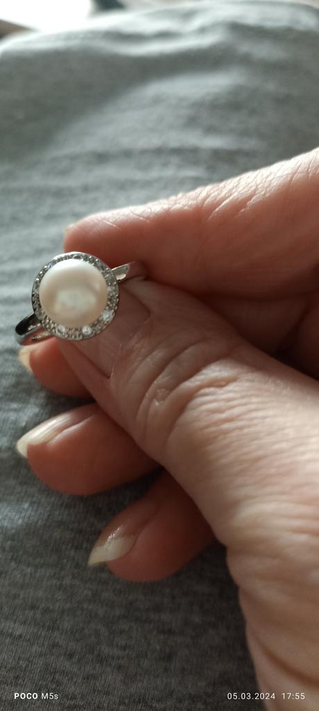 L'anello è semplicemente magnifico, sembra molto bello.La perla del fiume è naturale e non piccola.