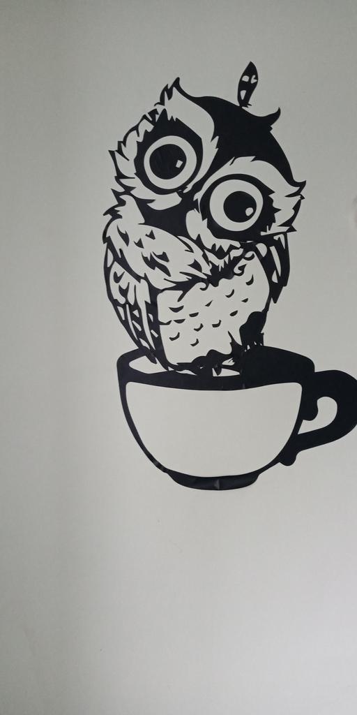 L'adesivo è arrivato in un mese, non molto comodo da incollare. Il gufo è bellissimo. Consiglio il venditore