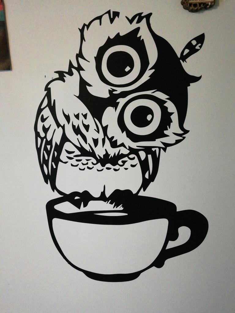 Divertente cartone animato gufo tazza di tè caffè per adesivi da cucina decorazioni per la casa adesivo da parete vivente