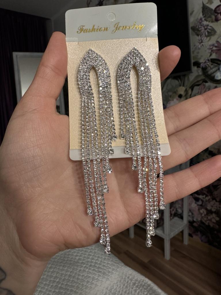 Orecchini lunghi con strass Hanno superato le mie aspettative. Molto brillante ed elegante e sono estremamente soddisfatto di questo acquisto. Ho molti grandi orecchini scintillanti ma questi sono i più leggeri Puoi indossarli a lungo senza sentire la pressione degli orecchini e ogni pezzo è morbido e confortevole È realizzato in cristallo e strass, incastonato su un bellissimo metallo color argento, gli orecchini brillano di grazia e bellezza. E la superficie del metallo è altamente lucidata. Questi sono ottimi per diverse occasioni, ma possono essere indossati soprattutto in una festa notturna, ballo di fine anno, appuntamento serale o in qualsiasi occasione speciale quando si accendono e brillano! Mi è stato consegnato in 17 giorni senza alcun difetto👍👍