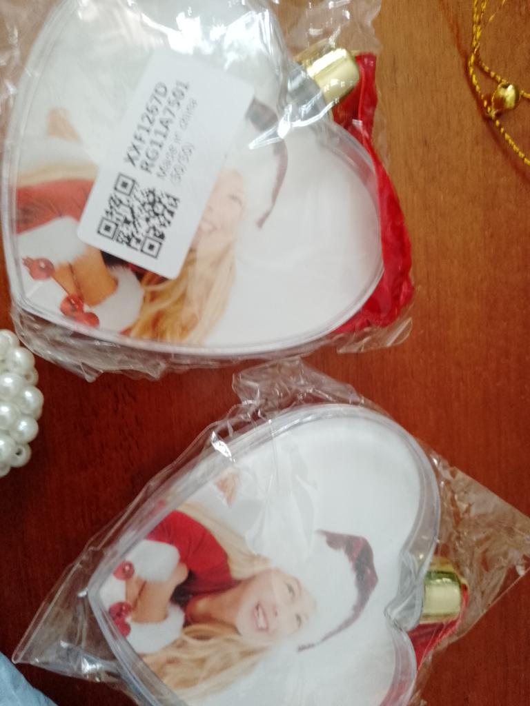 Ciao a tutti 👋 I compagni di classe sono andati in un pacco combinato nell'Ucraina centrale per un mese. Confezionato in un sacchetto a bolle d'aria. Tutti gol, tutti bellissimi. Plastica normale, corda bella e vellutata. Un po' di tristezza con la foto: selezione, stampa, taglio, inserimento, ma ne vale la pena! Puoi inserire 1 foto, noi ne abbiamo inserite 2, la decorazione si è rivelata fronte-retro. Stanno benissimo sull'albero di Natale 🎄👍 Un'idea interessante per un regalo ai parenti 🎁 L'ho comprato per i miei nonni, ora voglio ordinarne altri per me. Grazie Joom, consiglio il venditore. Buon shopping 🤗