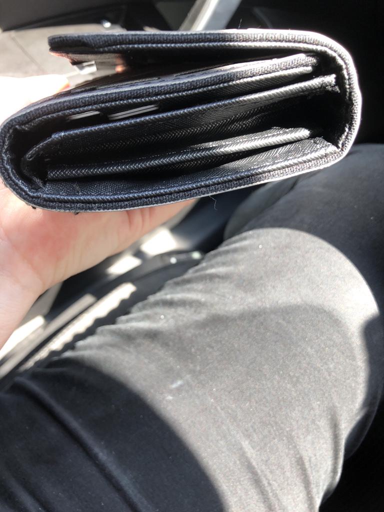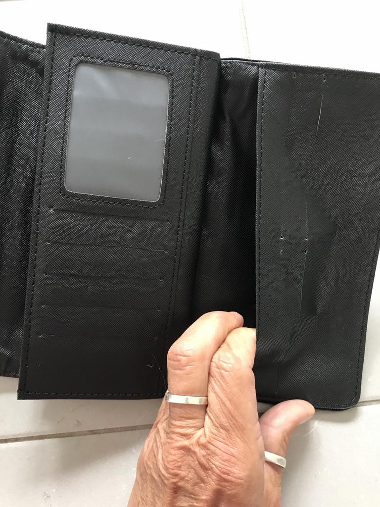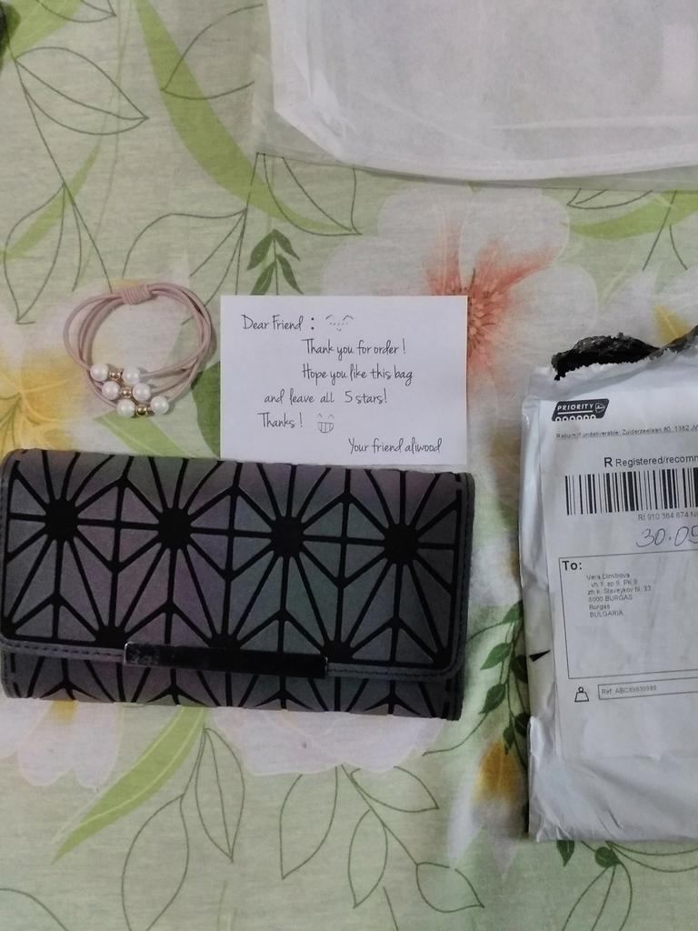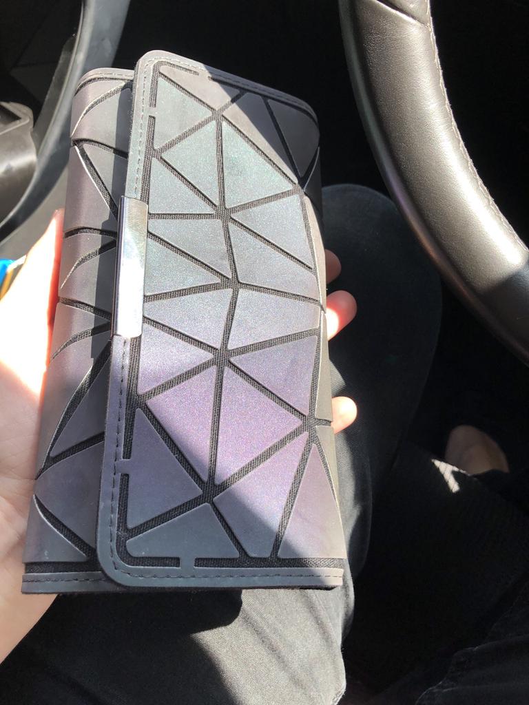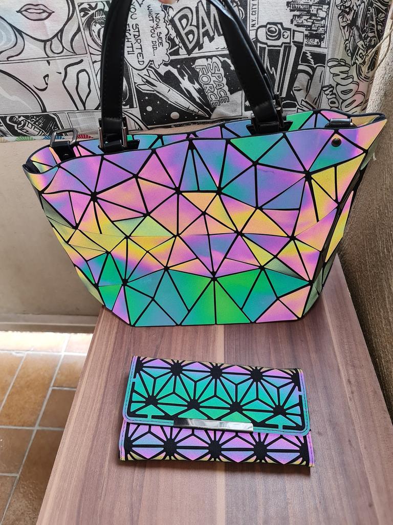 Meraviglioso portafoglio riflettente. Oltre alla stessa borsa precedentemente acquistata.