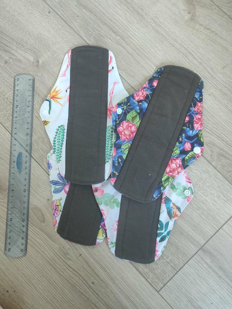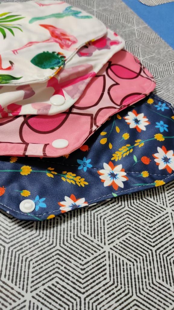 Bellissimo set di 4 assorbenti lavabili. Qualità dei materiali molto alta. Sono morbidi al tatto nella parte interna e sono impermeabili esternamente grazie al pul. La misura è corrispondente alla descrizione (come visibile in foto e video). Una volta ripiegati, occupano poco spazio. Manca la pochette per cambiarli anche fuori casa, ma si può risolvere. Ordine super veloce. Consiglio a tutti di acquistarli.