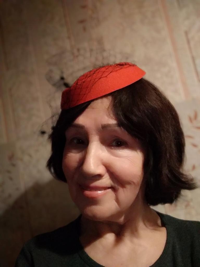 Il cappellino è delizioso. Non è di feltro, è fatto di materiali sintetici, ma ha un aspetto elegante. Lo raccomando.