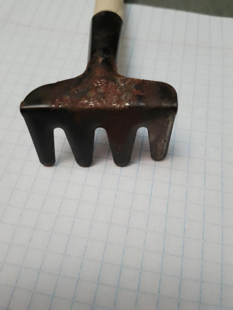 L'ho preso in regalo. Ma sul rastrello c'è ruggine. Per confronto, la paletta del set - con quella è tutto a posto.