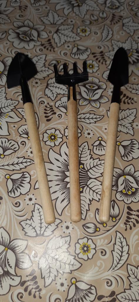 Accessori in miniatura per la cura delle piante d'appartamento. D'ora in poi le mani saranno più pulite e il terreno più soffice. Composizione - metallo/legno. Grazie Jum per la rapida elaborazione dell'ordine!
