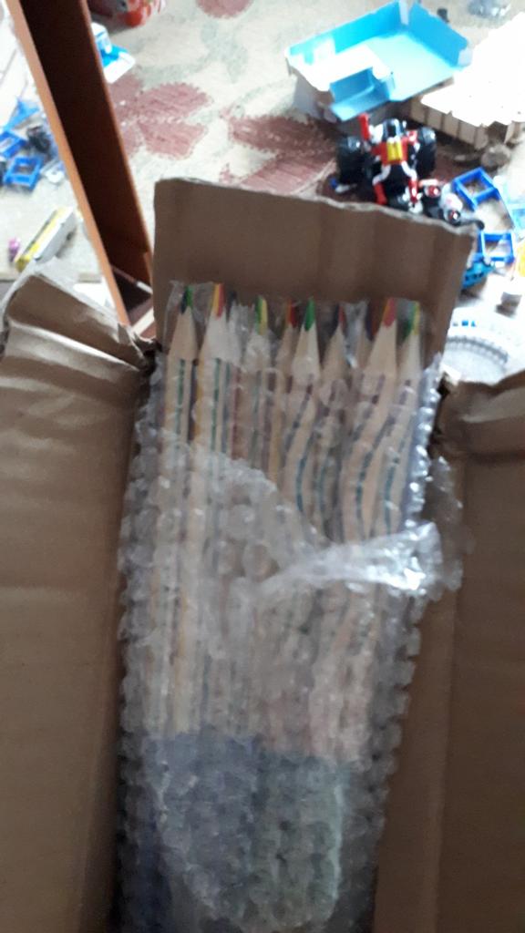 Il pacco è arrivato in Ucraina un mese dopo. Le matite corrispondono a quelle indicate nell'annuncio.