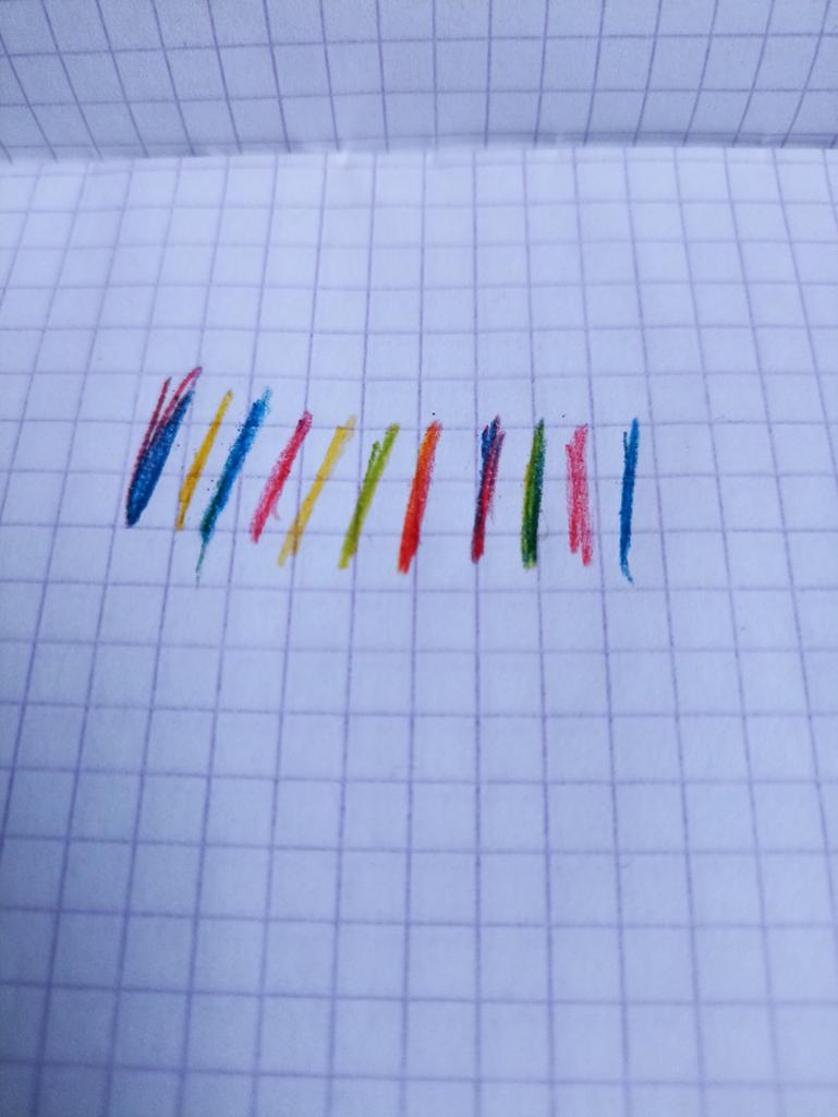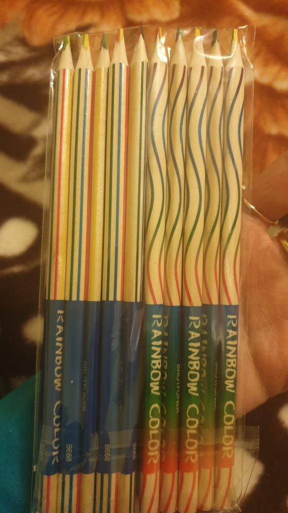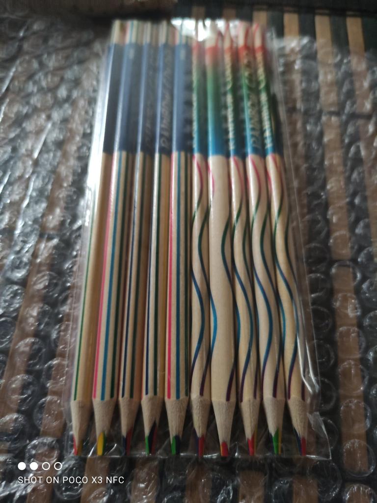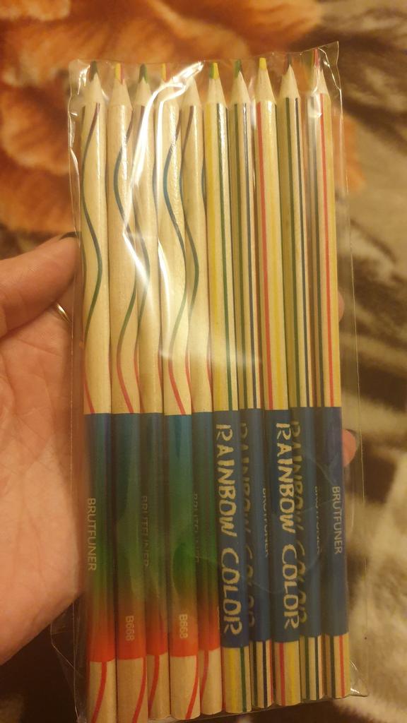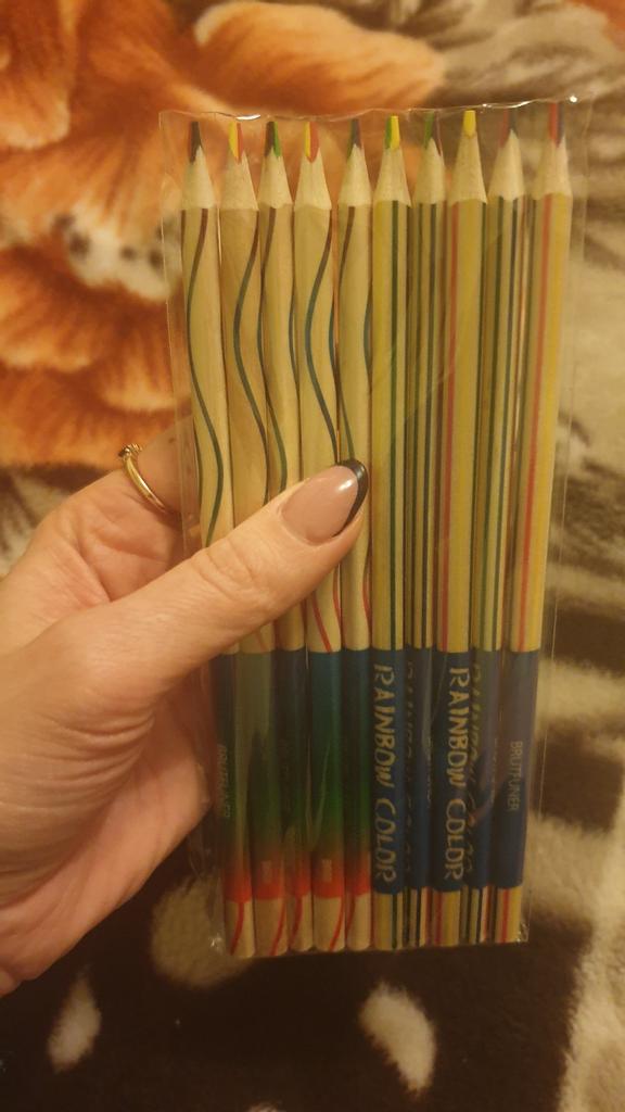 Le matite sono arrivate rapidamente, splendidamente, imballate in modo sicuro in una scatola, brufolo e pellicola, tutte intatte, disegnano bene. La forma è triangolare fresca, il colore sembra essere lo stesso, i colori sono belli, non troppo chiari e non troppo accesi. Grazie venditore e jum. Io raccomando.