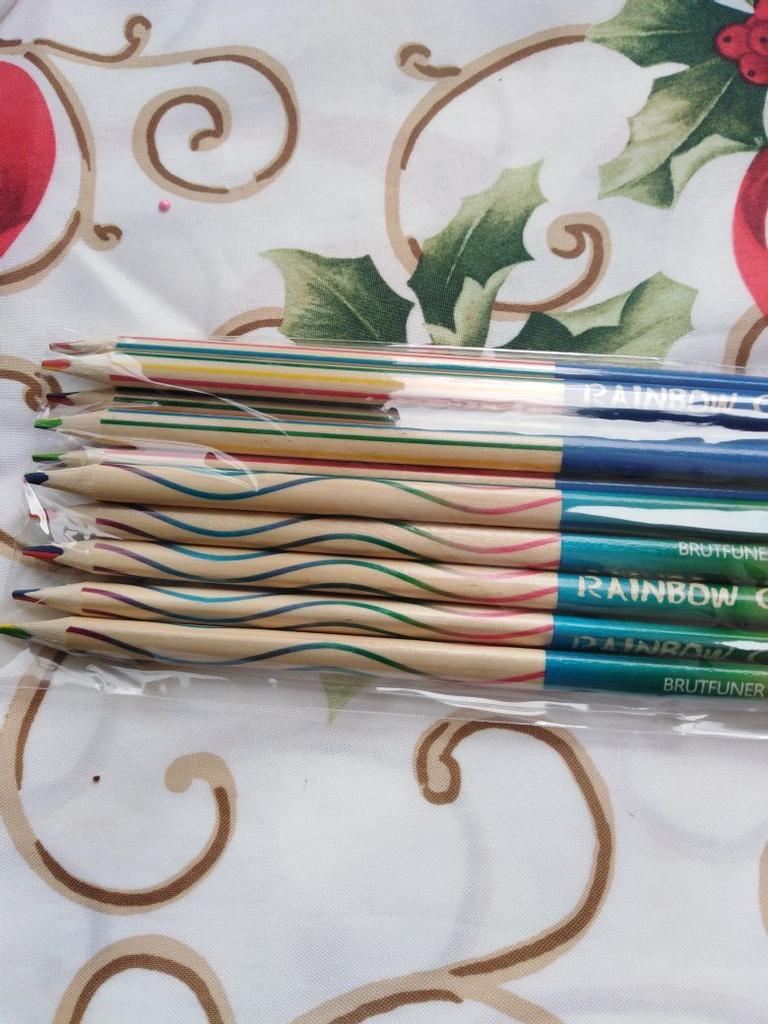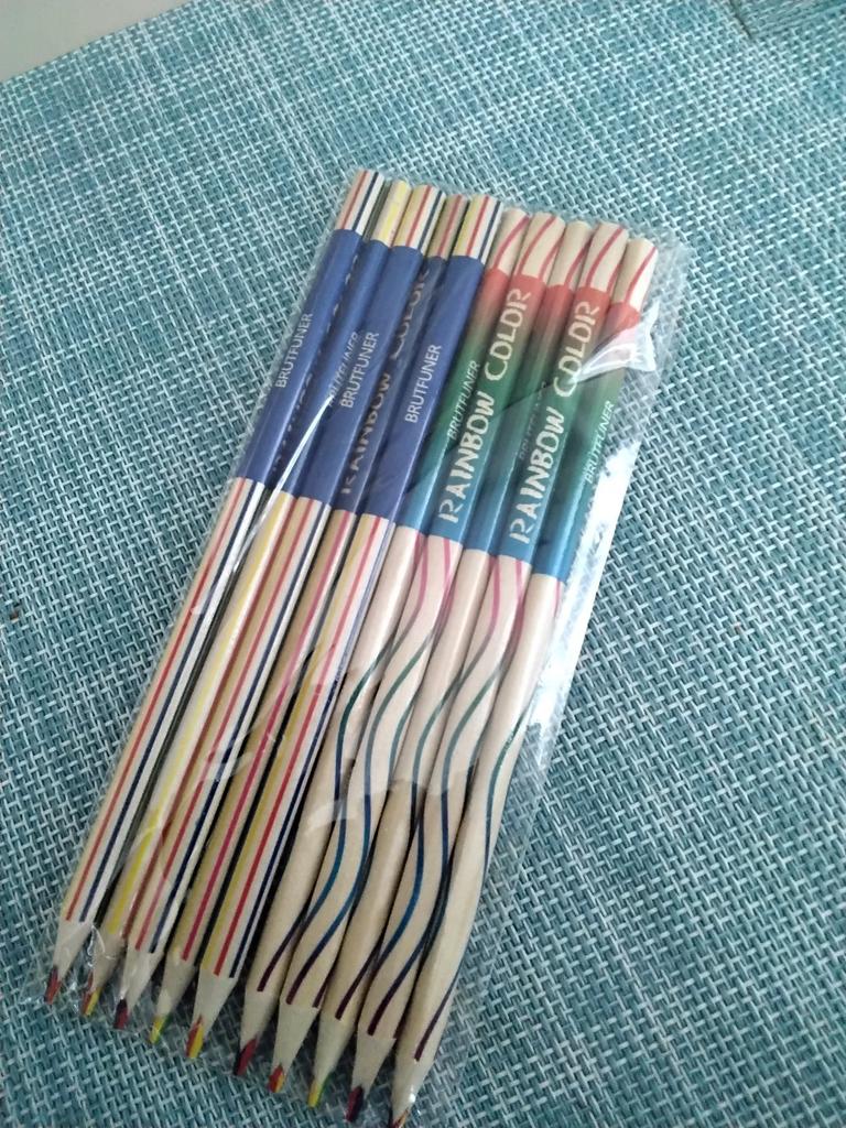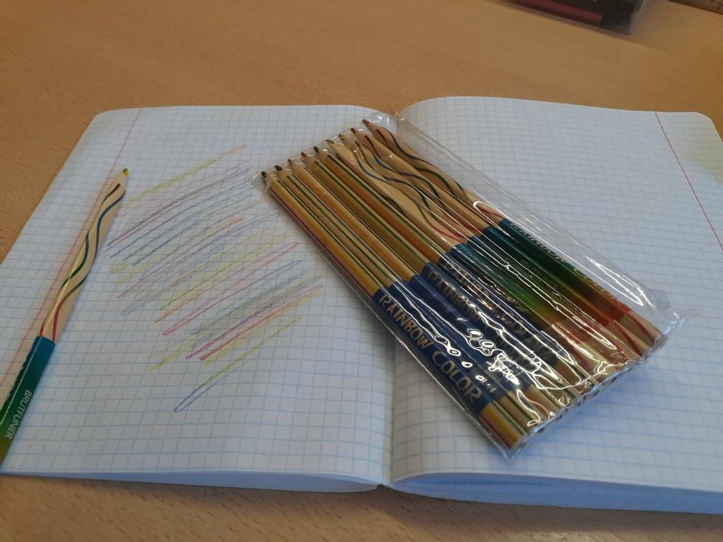 Non sono matite color arcobaleno come le trovate qui, ma 4 colori in una penna