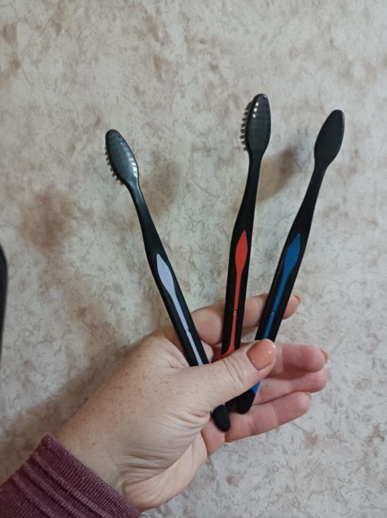 Lo spazzolino è morbido, di solito uso quelli duri, ma proverò. Il manico è insolito, piatto, siamo abituati a quelli più voluminosi.. Lo userò un po', poi aggiungerò le impressioni. Grazie Joom per la consegna.