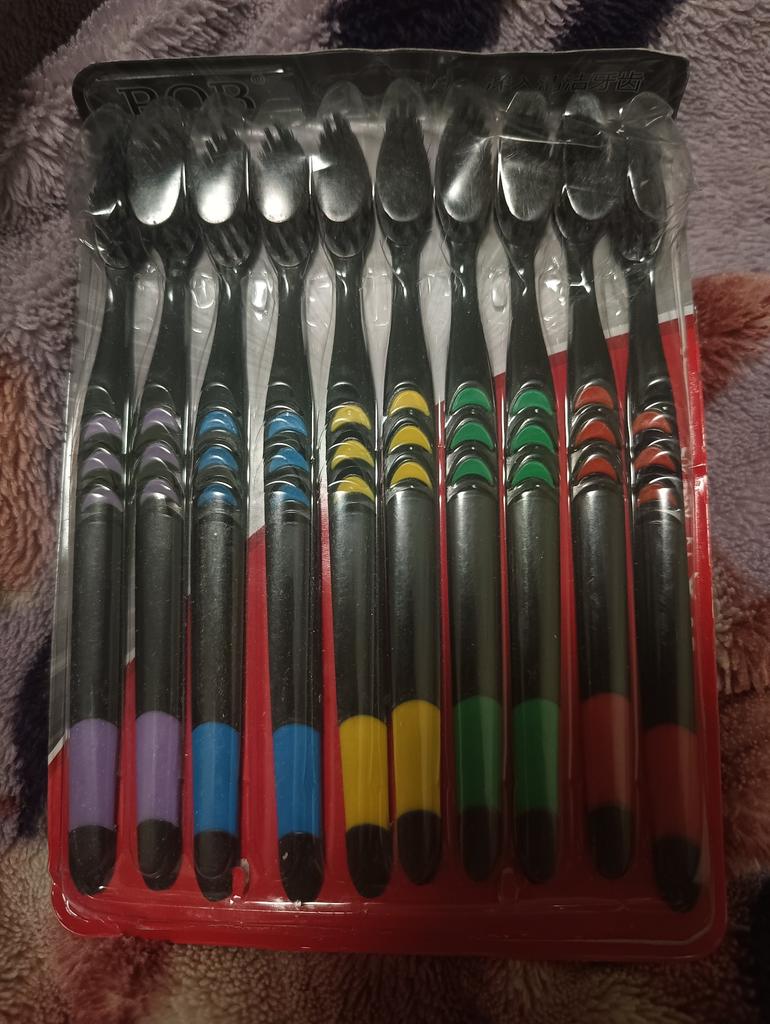 10 spazzolini da denti. Vari colori. Qualità eccellente. Il prezzo è quasi nullo. Sono soddisfatto di tutto. Le setole sono medio dure, da più a morbide. Ci è voluto circa un mese. Il pennello è stupendo, ma la plastica sottile si rompe.