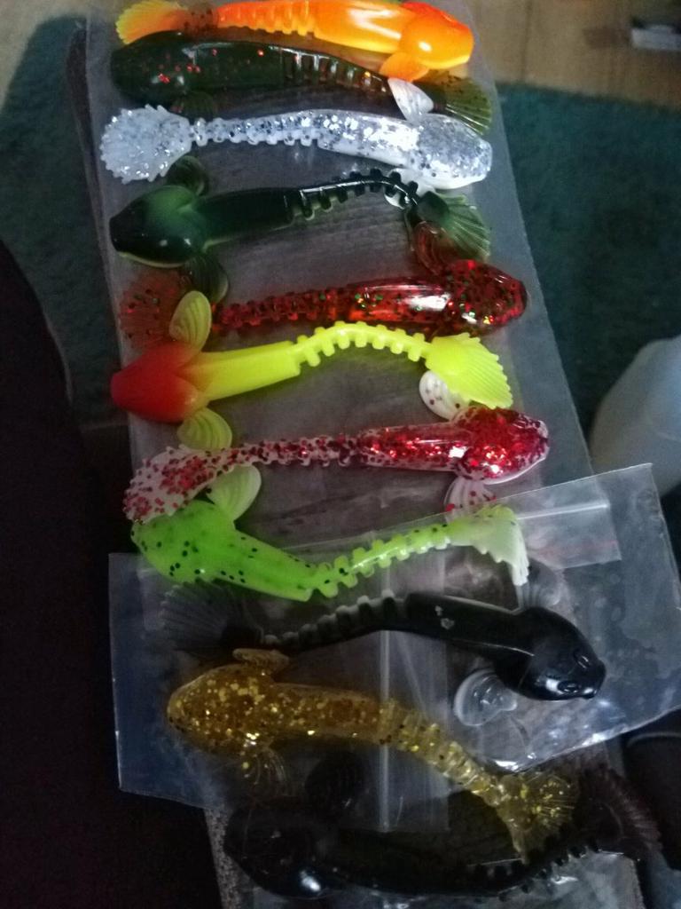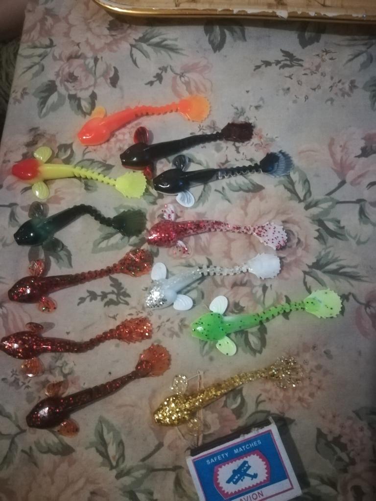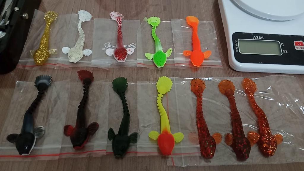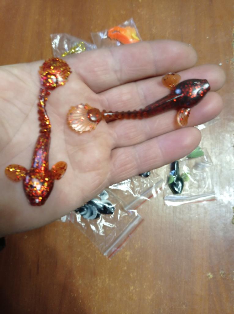 La gomma è buona, con l'odore di un attrattivo, non esattamente un gambero, misura 9,3 cm / peso 4 g nella quantità di 12 pezzi