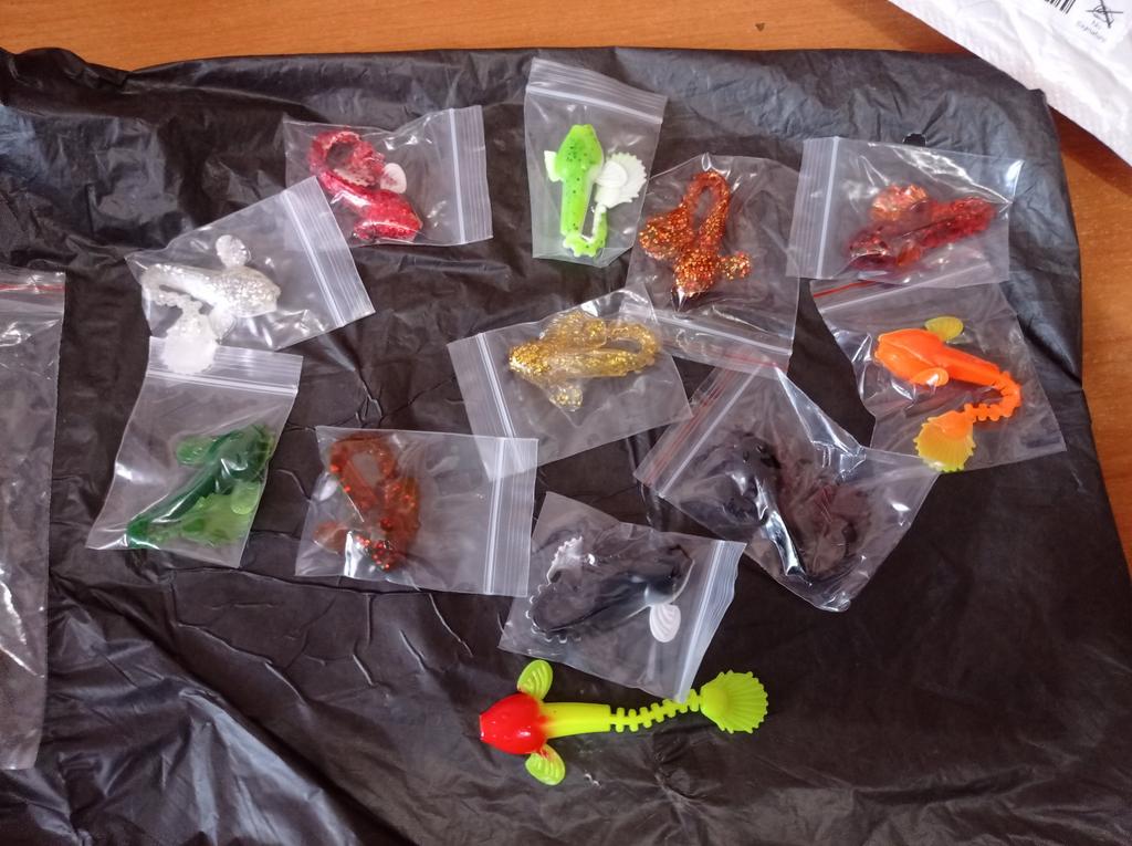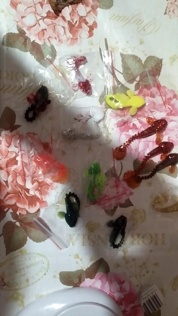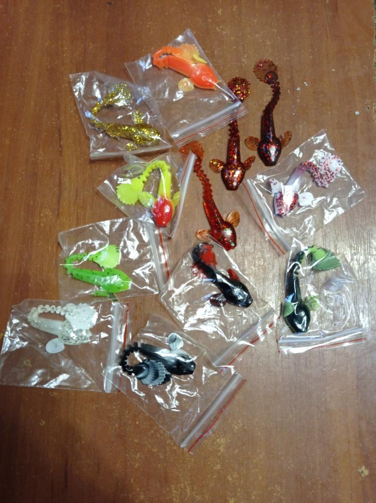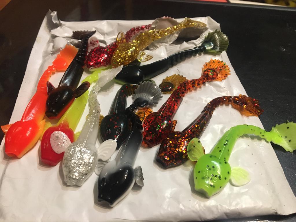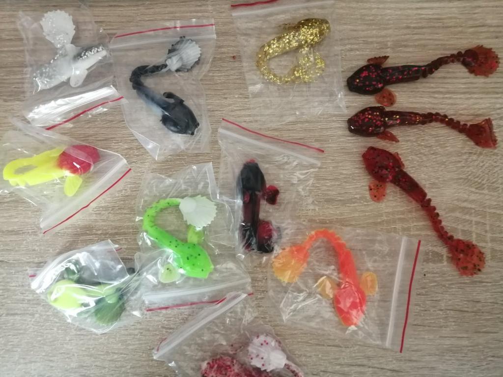 La gomma è buona, con l'odore di un attrattivo, non esattamente un gambero, misura 9,3 cm / peso 4 g nella quantità di 12 pezzi