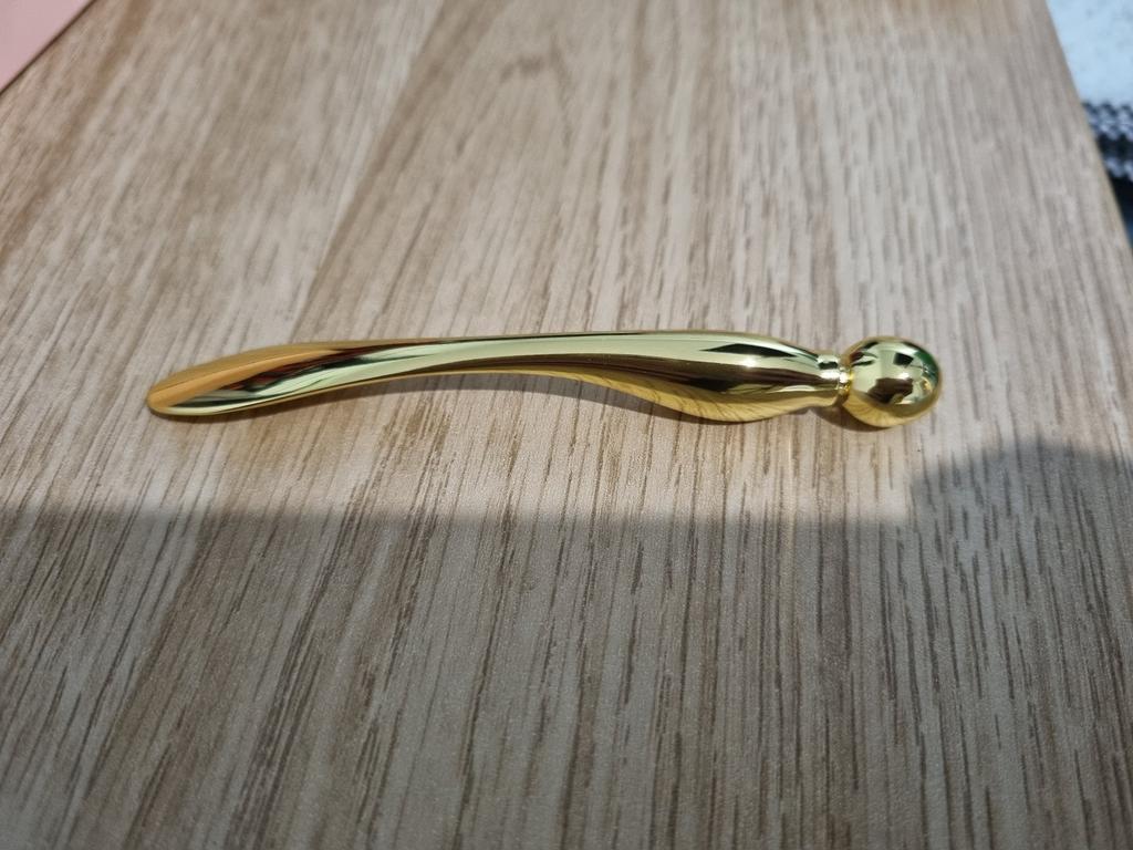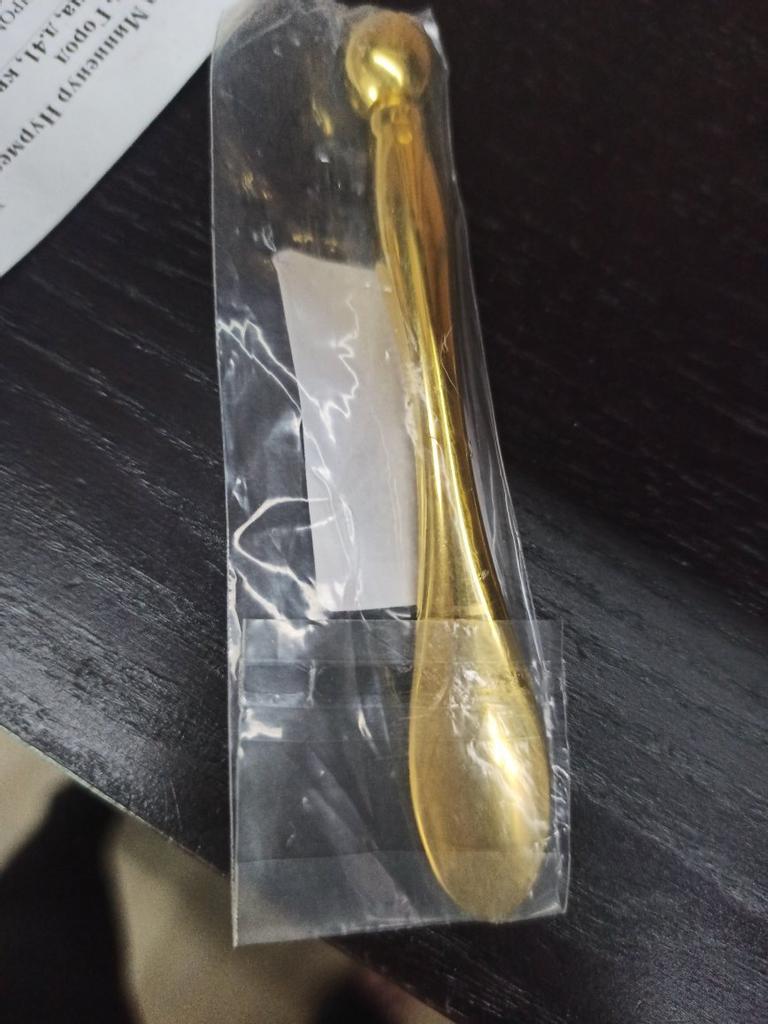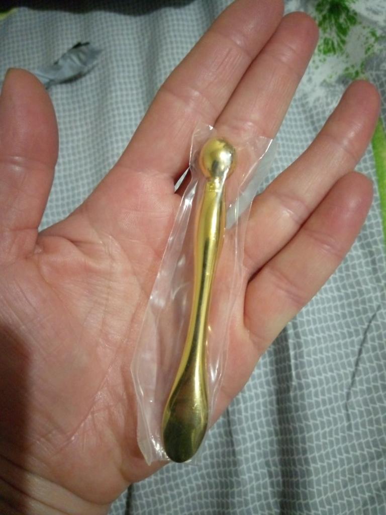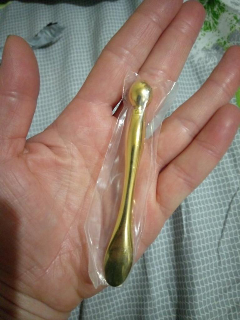 È molto piacevole da massaggiare nella crema per gli occhi. Dall'altro lato c'è una spatola per togliere la crema dal barattolo.