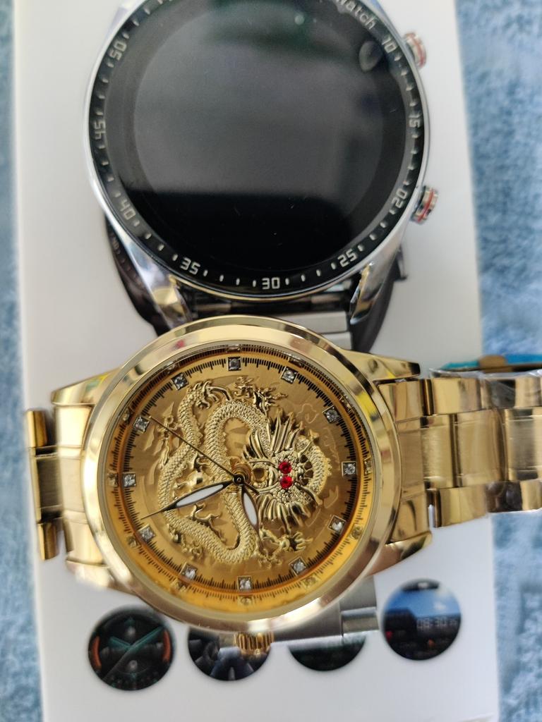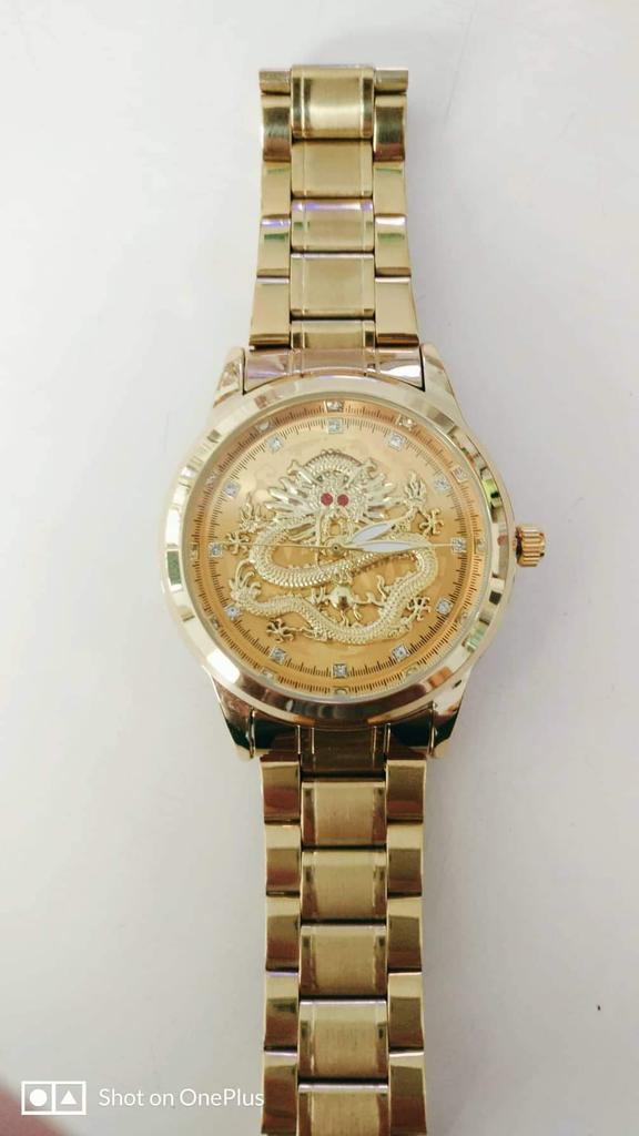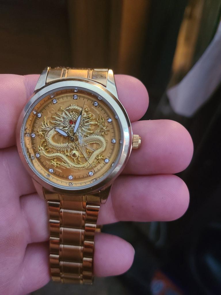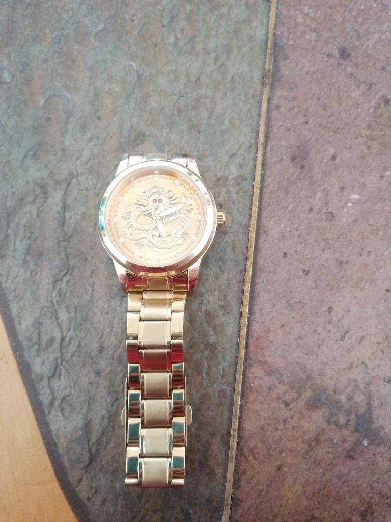 Bellissimo orologio con un drago. Oro. Apparentemente con batterie a bottone. L'ho preso per un regalo.