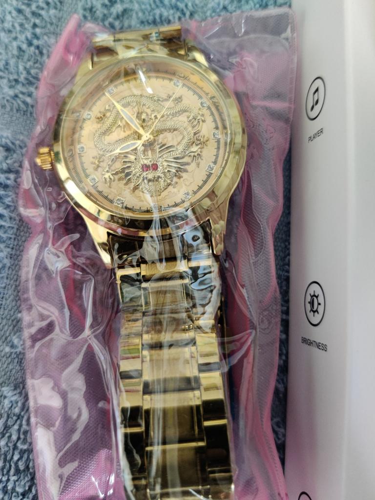 Orologio sensazionalmente bello. Sono entusiasta del drago con due occhi rossi. Meraviglioso da guardare. Il venditore è raccomandato. Grazie