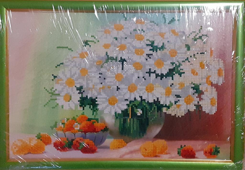 È una tela colorata e solo i fiori sono fatti di sassi. Io sono deluso