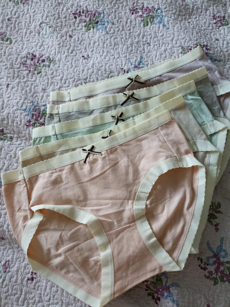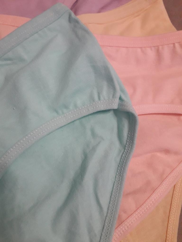 Le mutandine sono morbide, piacevoli al tatto, bei colori. La dimensione secondo la tabella è adatta. Quelli viola sono un po' più grandi e quelli gialli sono un po' più piccoli degli altri.