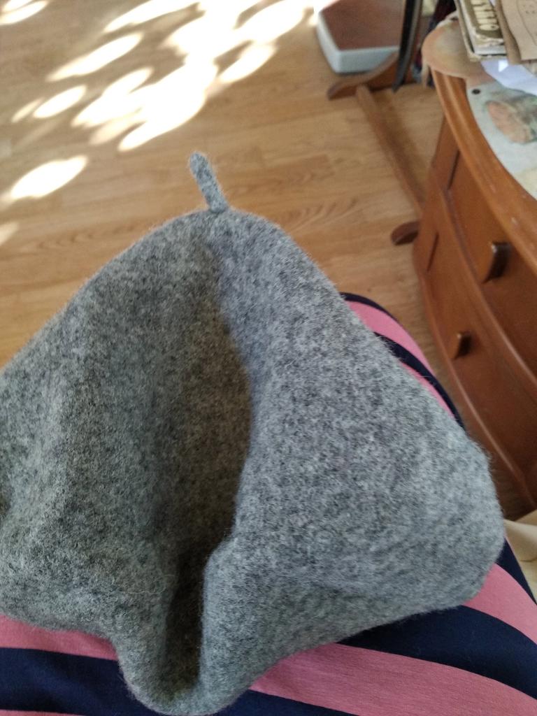 Veste bene, purtroppo un po' traslucido. Lo abbellirò un po' con la tecnica dell'infeltrimento ad ago.