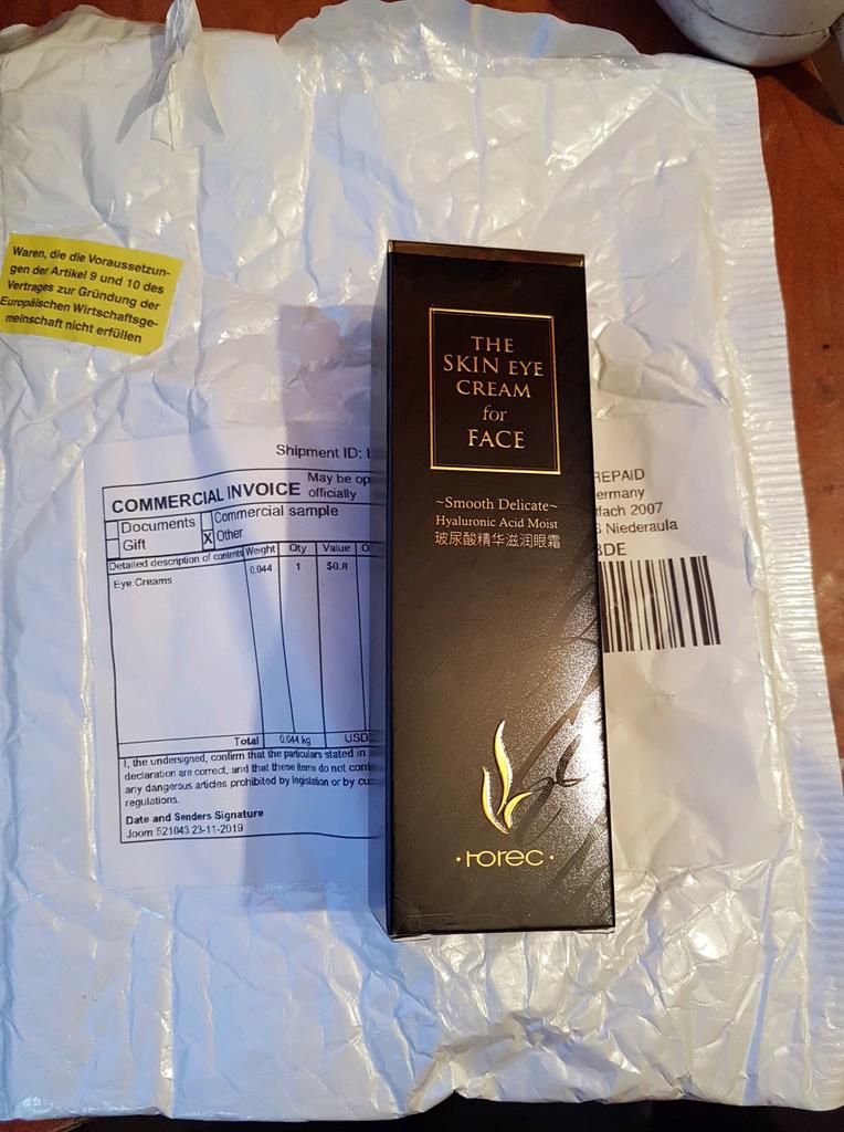 Dopo 14 giorni di viaggio, arrivato oggi 👍😊 Questa crema antirughe è ottima e ha un buon profumo (un po' di odore medicinale).... si applica molto bene e si assorbe molto velocemente Grazie per la consegna veloce Altamente raccomandato 👍👍👍👍👍 Aggiornamento fine maggio '23 = comprato a gennaio e sono molto soddisfatto. Aiuta davvero contro le rughe e le occhiaie sotto gli occhi 🙈 Comprerò sicuramente di nuovo 😊
