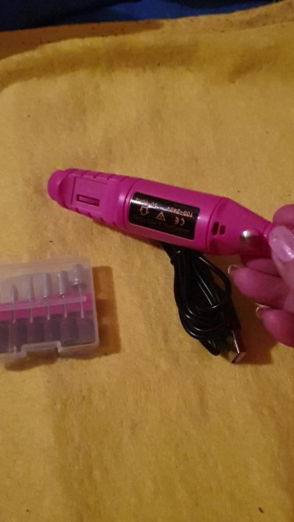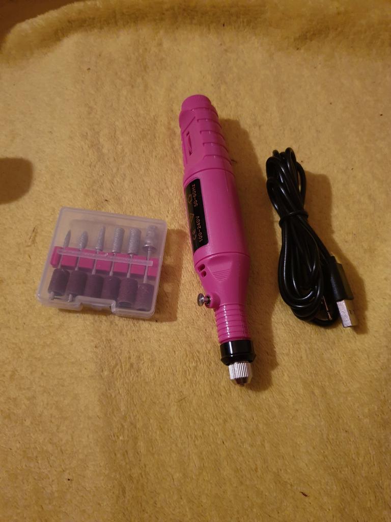 La merce è arrivata in 32 giorni. Sembra ancora meglio che nella foto. Anche il regolatore di velocità funziona bene. Ho già utilizzato le frese. Le frese si inseriscono facilmente nella fresatrice. Due frese più piccole vanno bene per la cuticola. L'ugello marrone più piccolo pulisce bene lo smalto gel. 😉