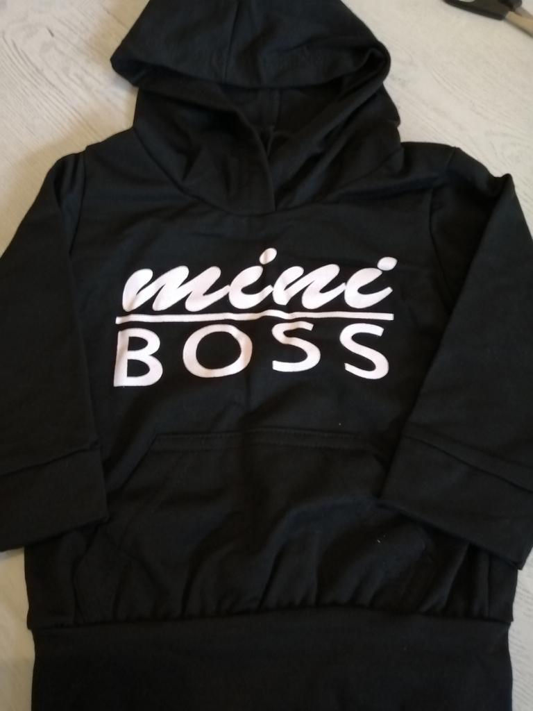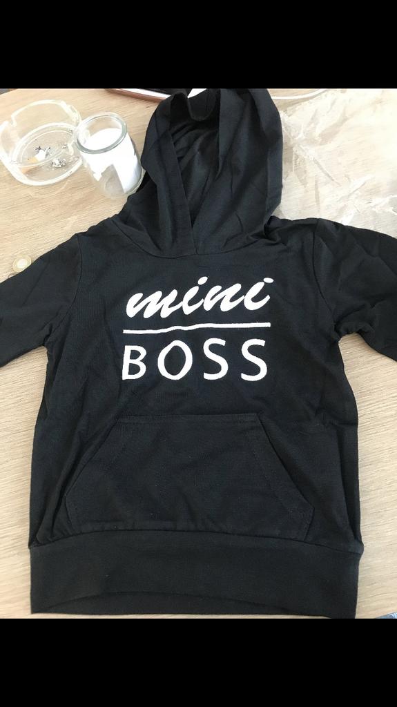 „𝐌𝐢𝐧𝐢 𝐁𝐨𝐬𝐬“ SᗯᗴᗩTSᕼIᖇT, ᕼOOᗪIᗴ ᖴᑌ̈ᖇ KI ᑎᗪᗴᖇ La felpa sembra super carina e ha un cappuccio. La grande scritta "Mini Boss" in due caratteri diversi sul davanti. Mia figlia è alta 1,05 m e attualmente indossa le taglie 104/110/116 (a seconda del produttore). Abbiamo scelto la felpa in 4-5 anni e ci sta benissimo! Direi che è un 110. La felpa è relativamente sottile ma di buona qualità. Lo comprerei sicuramente di nuovo. Il tempo di spedizione è stato di 3 settimane.
