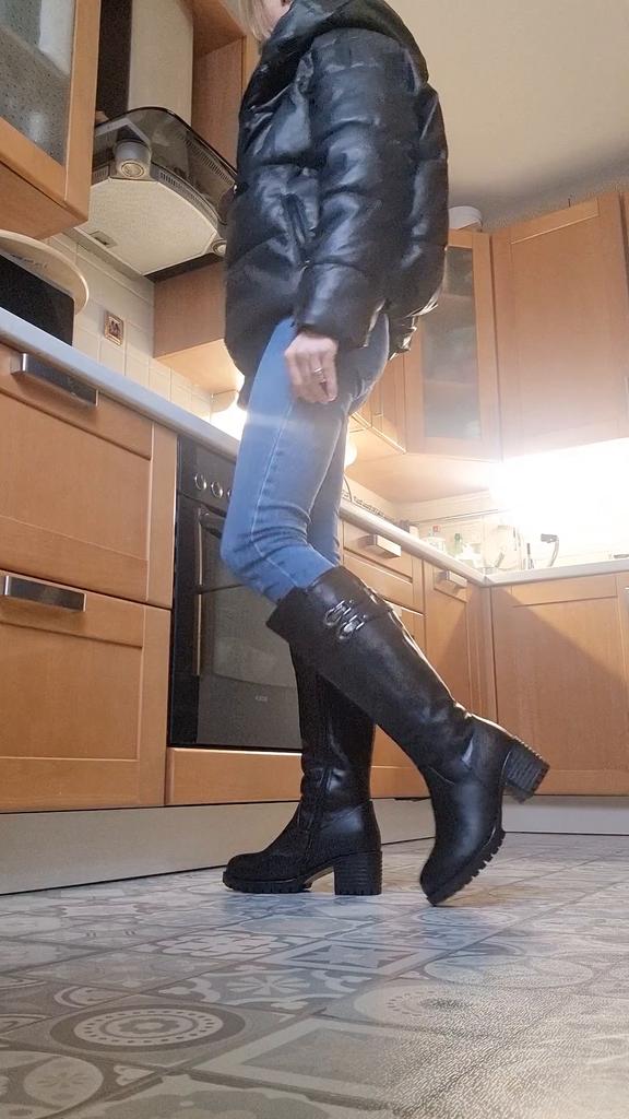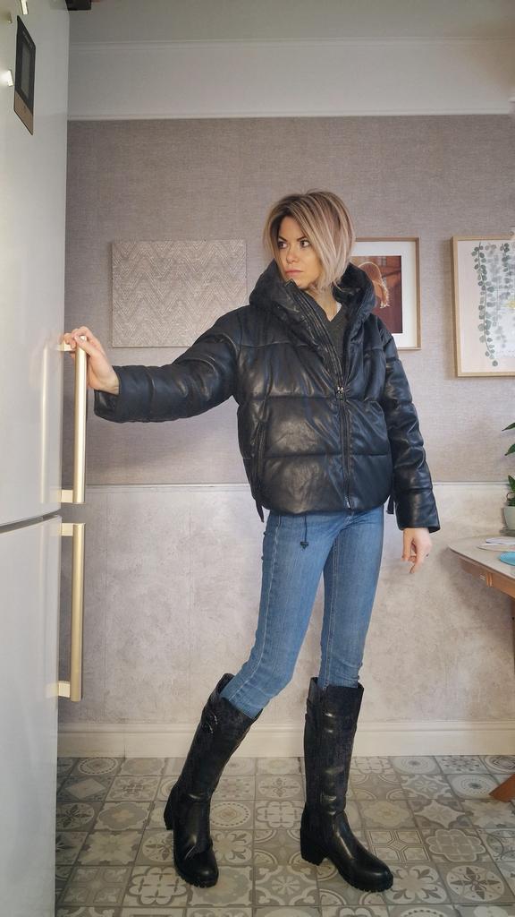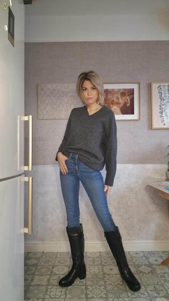 Ragazze, gli stivali sono belli (anche se non di pelle), se il polpaccio non entra di 2 cm, va bene. Puoi abbassarli un po', poi si allungheranno, li ho fissati. Ho preso 42 per 39, i piedi sono larghi, ma va tutto bene con la punta e la soletta. Gli stivali non sono grigi, ma neri. La pelliccia non è quella della foto, ma è tutto fantastico. Raccomando il venditore e il prodotto