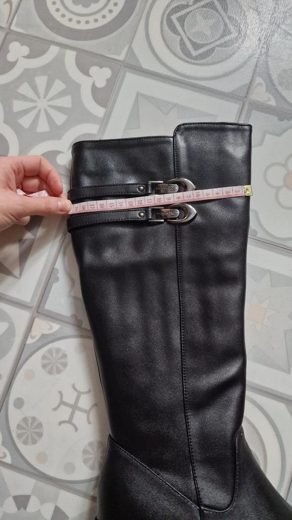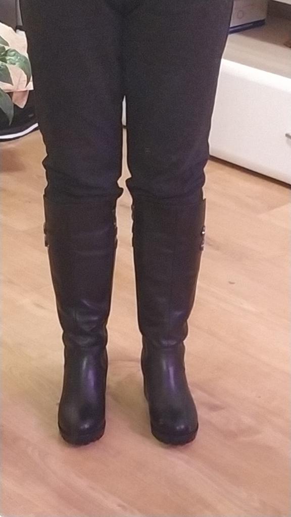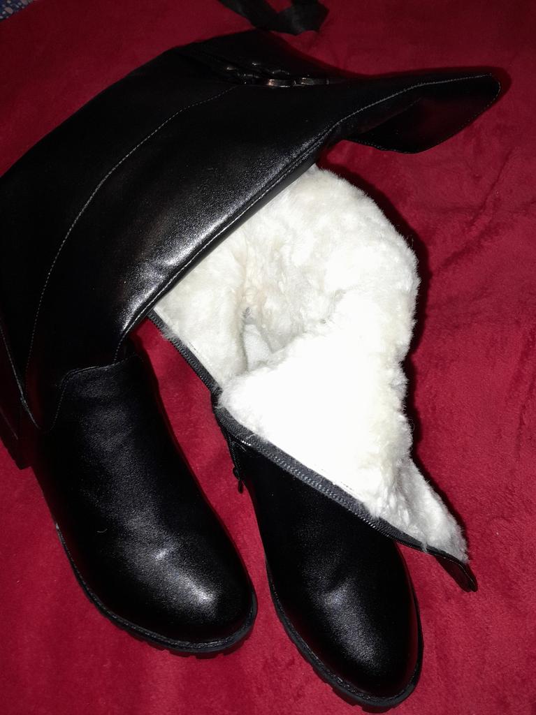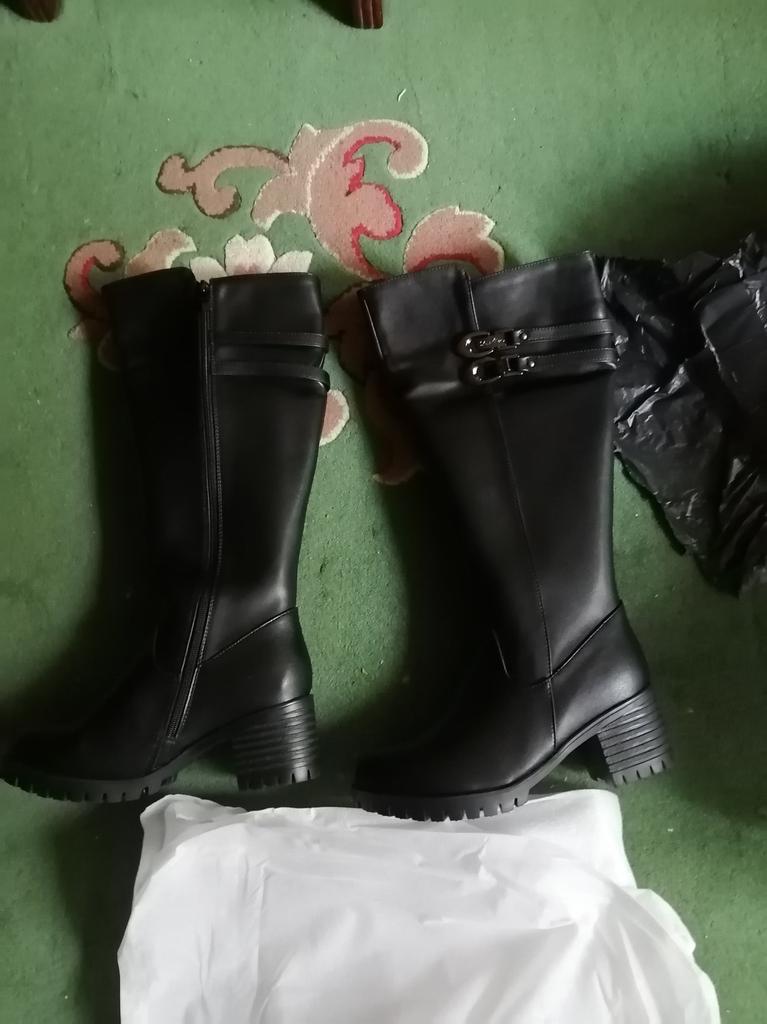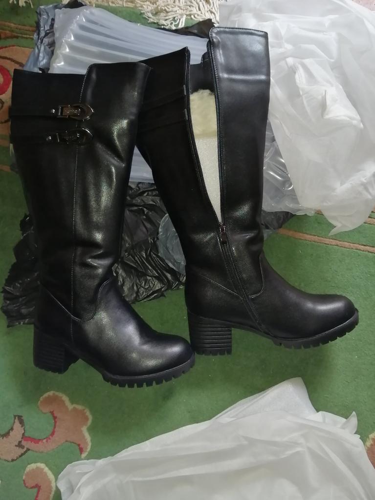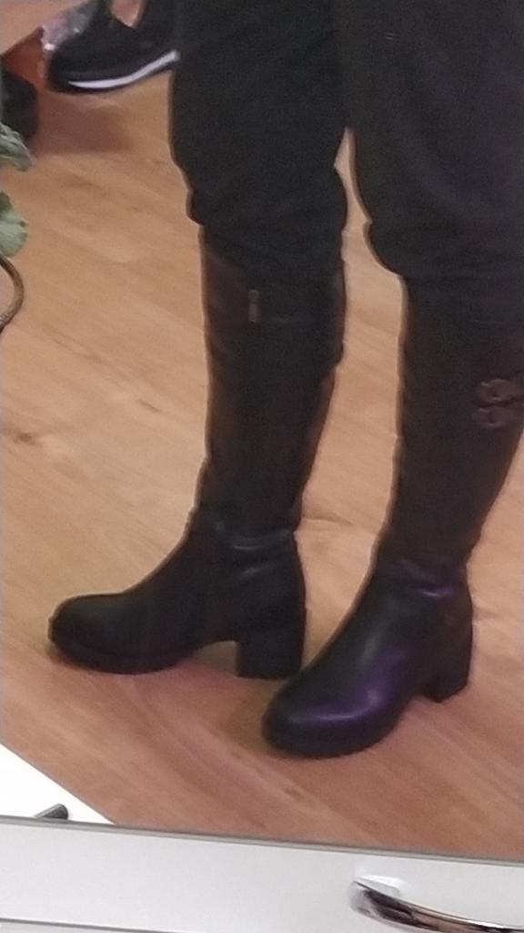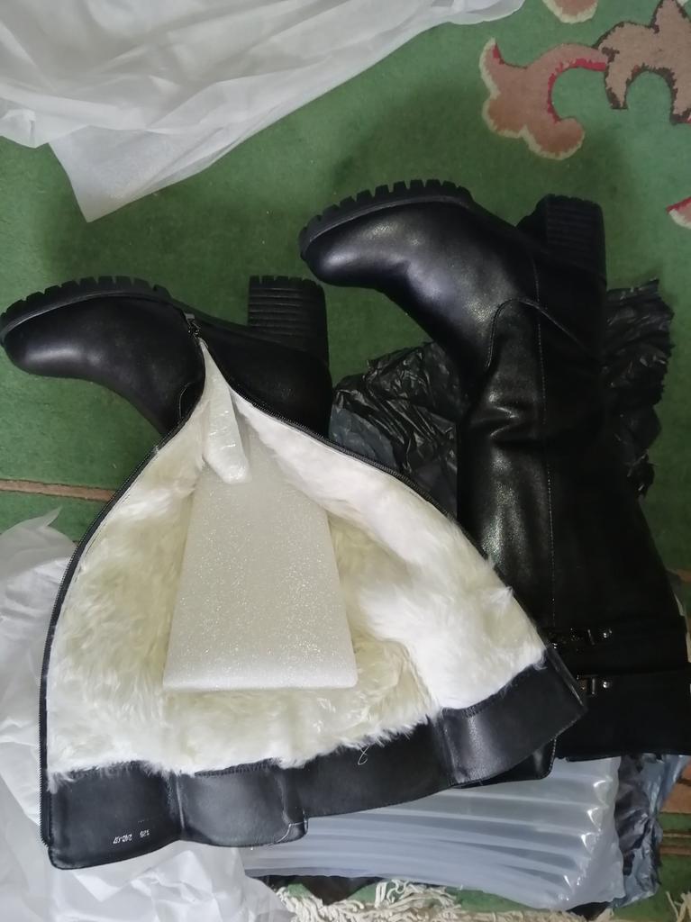 Ho ricevuto gli stivali, ho aspettato due mesi, non è terribile, la cosa brutta è che hanno provato a imballare gli stivali bellissimi, ma non con le mani, a quanto pare... In un buon e robusto pacchetto di plastica - ma 15 cm più corto degli stivali: li hanno riempiti, strizzati, arrotolati, di conseguenza sono arrivati molto accartocciati. Ma mi piacciono gli stivali, il fondello è comodo, l'aspetto potrebbe essere quello di costosi stivali di pelle, alti, quasi fino al ginocchio, e ben cuciti, come se non fossero spiegazzati.... E la misura del mio piede è 24,5 cm, con un osso - per un calzino sottile è giusto.... La mia altezza è 23, il diametro degli stinchi è 38, potrebbe andare bene per me con i collant e con i jeans sottili, con quelli ho camminato per casa - le mie gambe sono fantastici... ma non leggeri, sono pesanti. Il difetto non si corregge, non c'è modo di indossarlo... Che altro per chi si azzarda a ordinarlo? La pelle non è spessa, piuttosto sottile, ma niente male, morbida, pelliccia artificiale, nonostante sia dichiarata naturale, ma è bianco, abbastanza alto, credo, fa caldo, ma si arrampica - orrore. C'è un forte odore chimico, l'ho tenuto in un pacco sul balcone... Non ordinerò scarpe simili per la seconda volta perché dell'imballaggio inadeguato e ho dovuto tagliare a pezzi questi stivali per restituire il costo... Grazie al servizio di supporto per la risposta tempestiva e corretta.