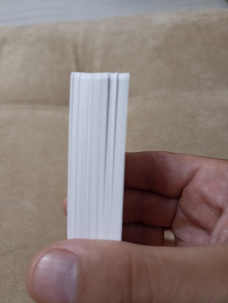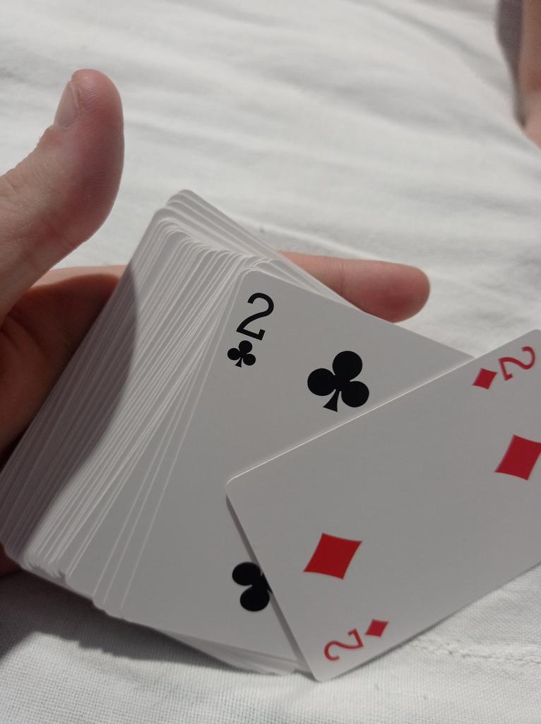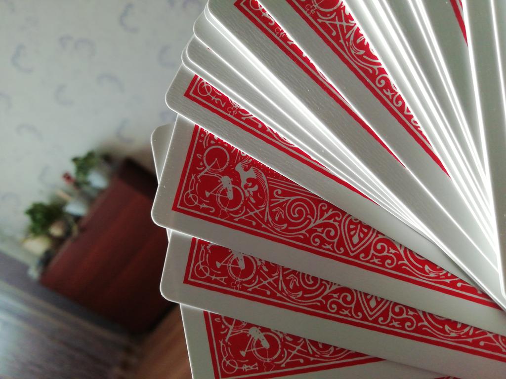 Tutto sommato, sono convinto della merce. MA : Entrambi i mazzi hanno il re di quadri tagliato male. La mappa è più larga in alto che in basso. Pertanto, indipendentemente dalla posizione nel mazzo, la carta si distingue sempre rispetto alle altre: sembra come se fosse una sorta di "carta separatore". Desta sospetti dove non dovrebbe essere. Peccato che non si possa usare così.....