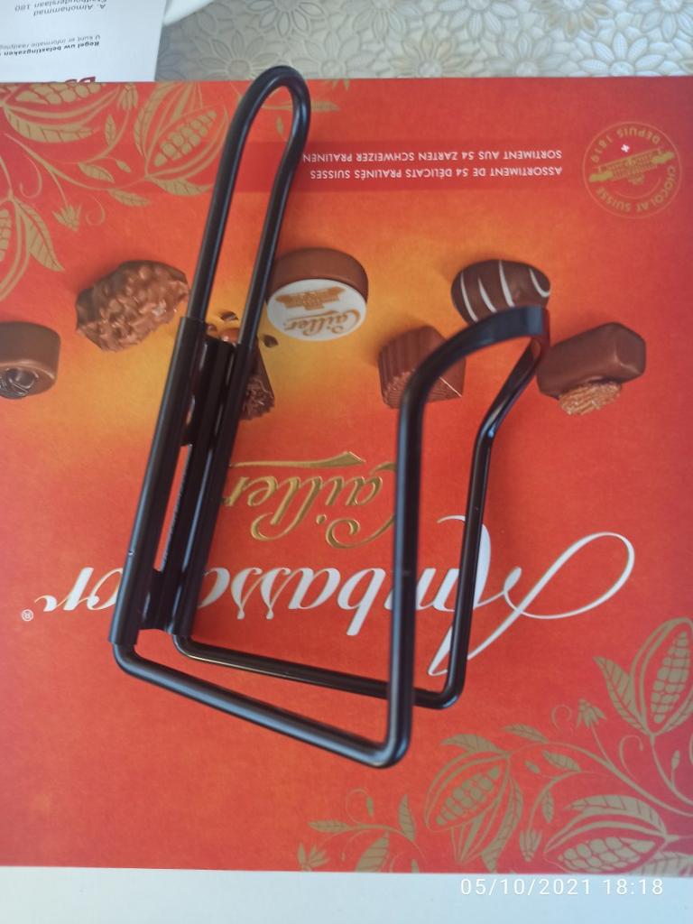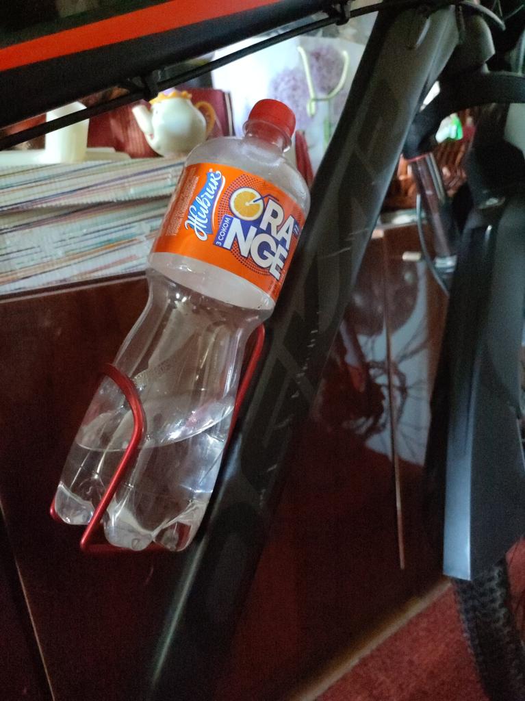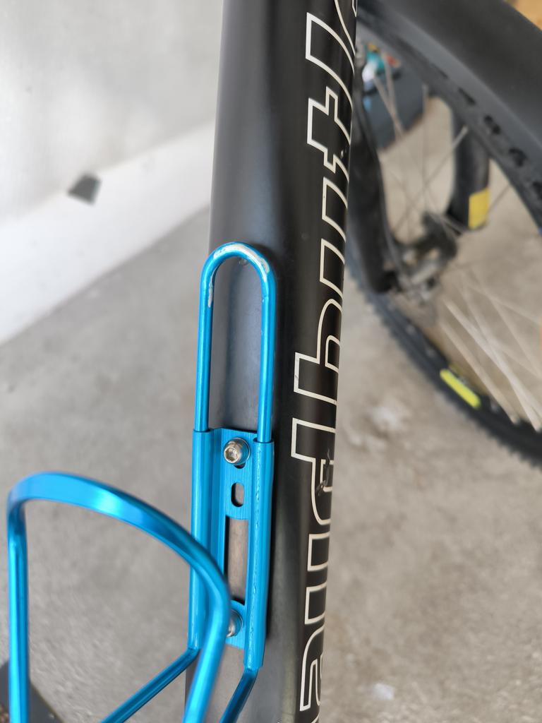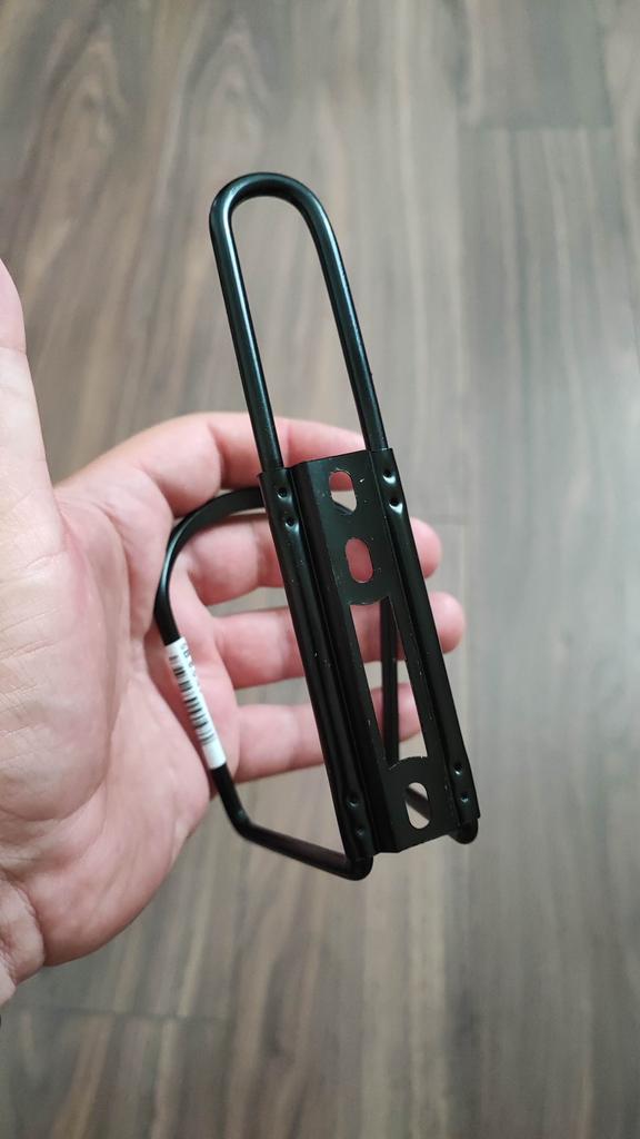 Il portabottiglie ha un bell'aspetto, purtroppo è un po' piegato, ma funziona. La borraccia si adatta bene a tutto.