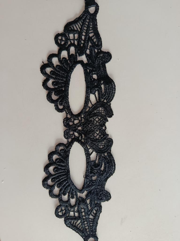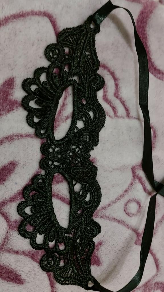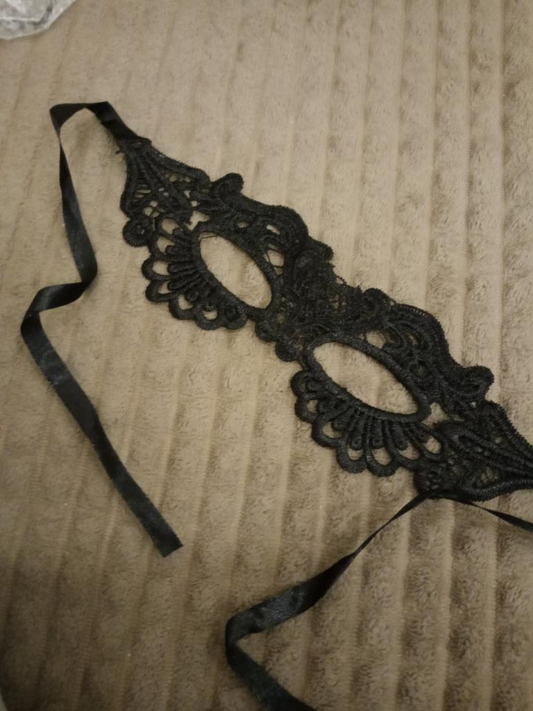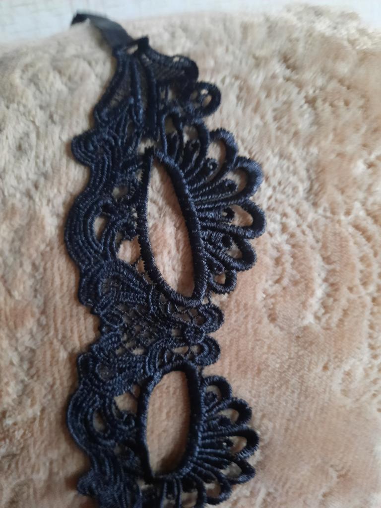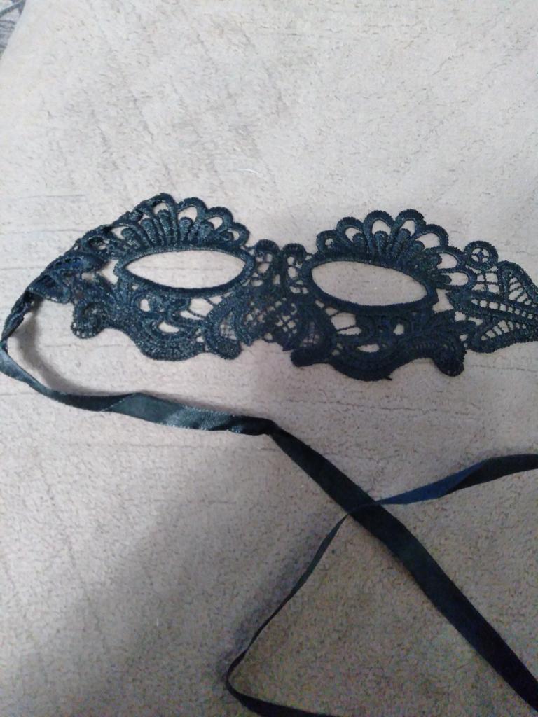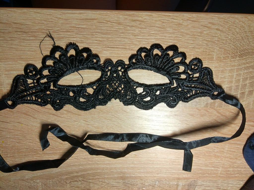 Bella maschera con cravatte. Il pizzo è ben fatto, i fili non sporgono. Grazie!
