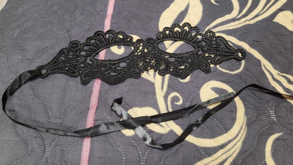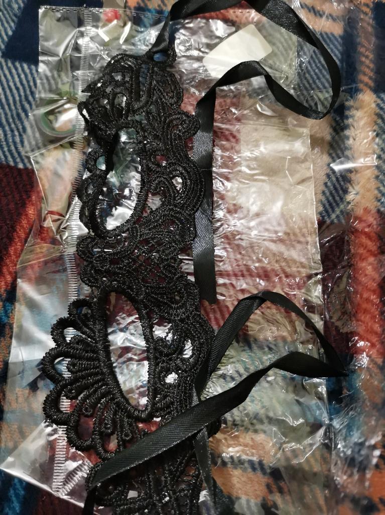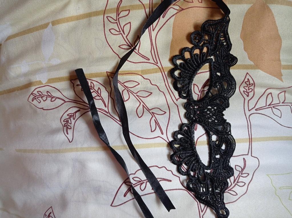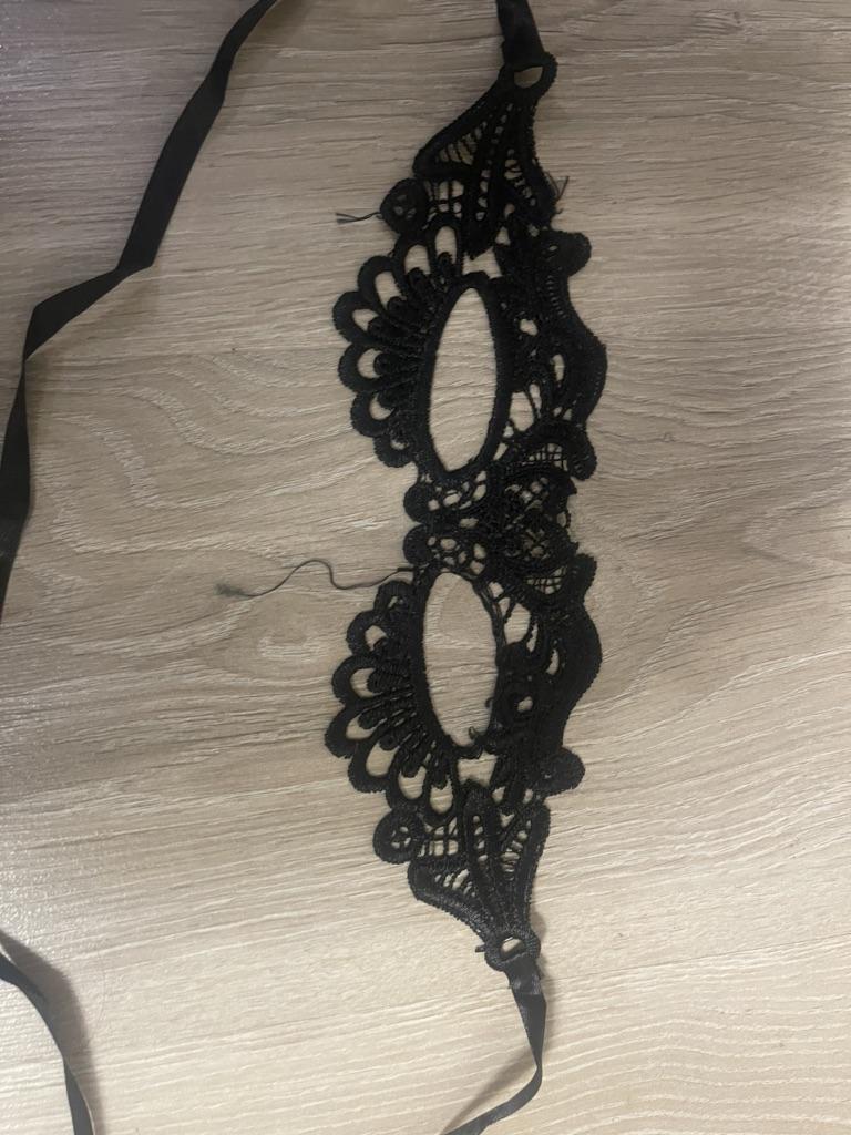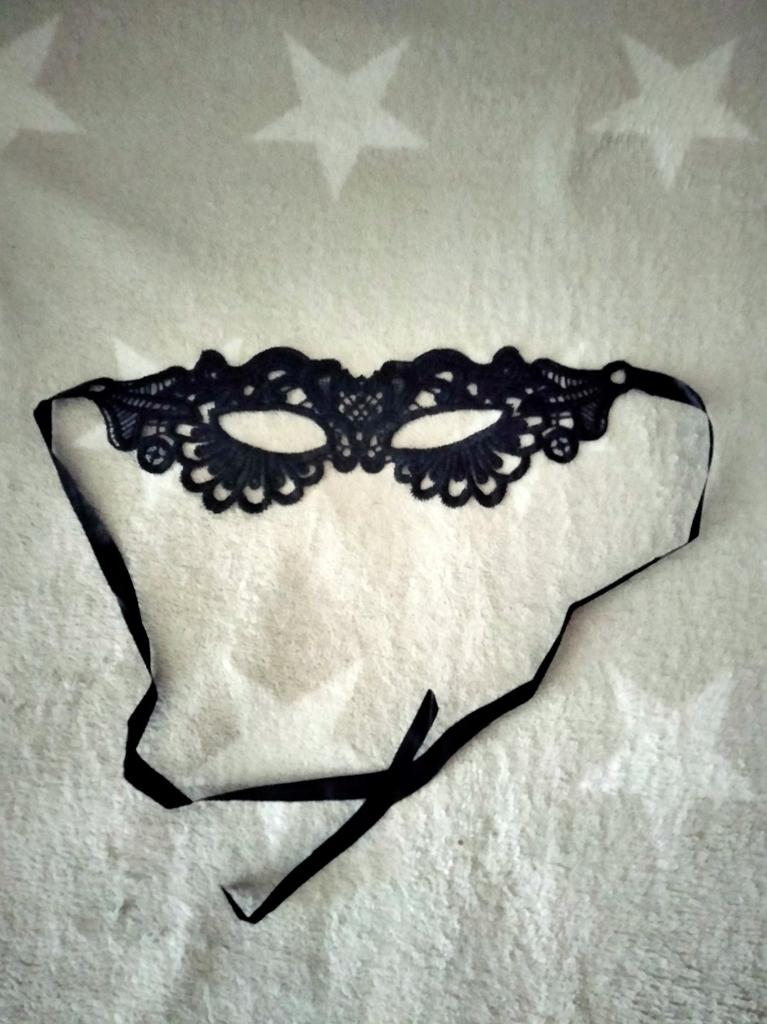 Bella maschera con cravatte. Il pizzo è ben fatto, i fili non sporgono. Grazie!