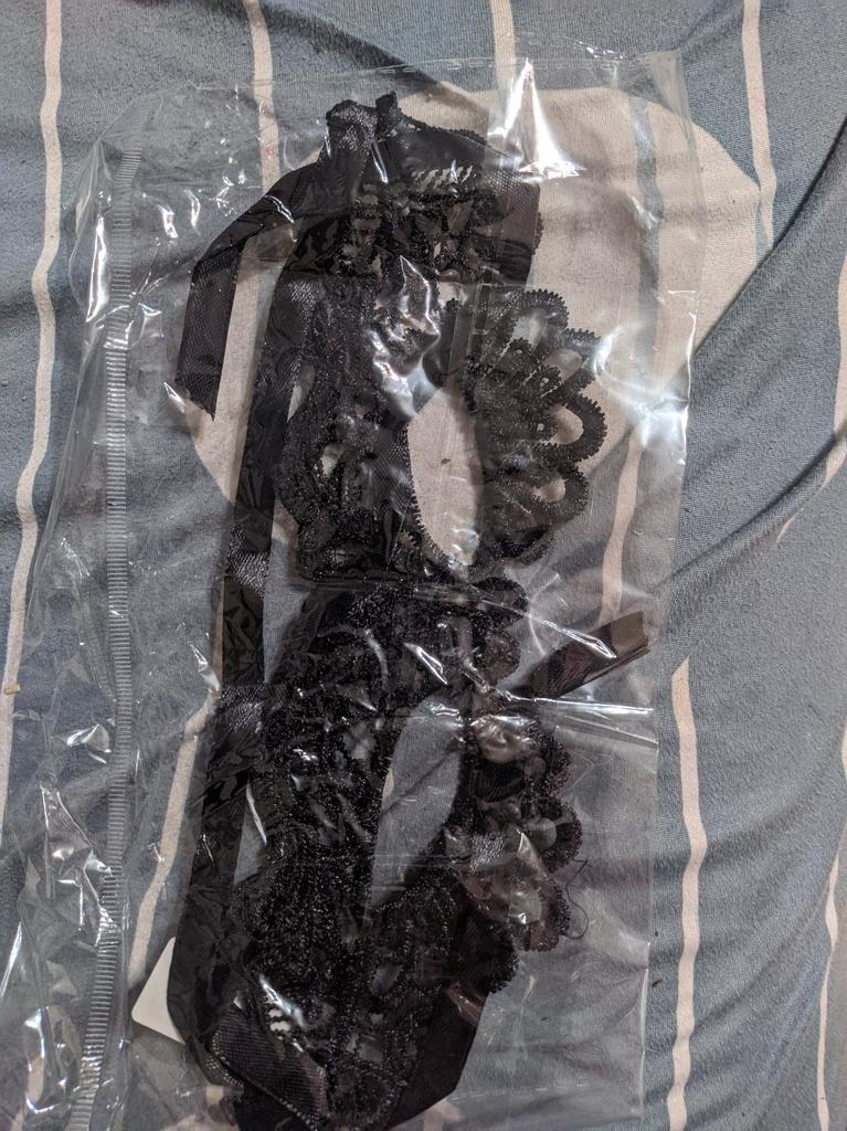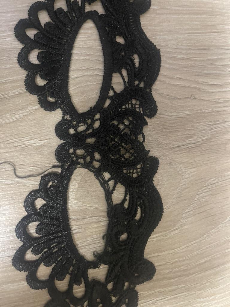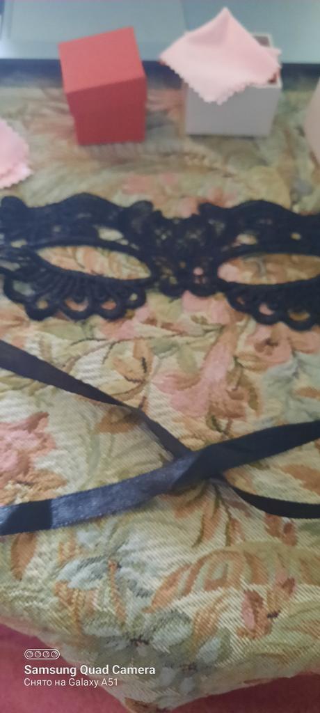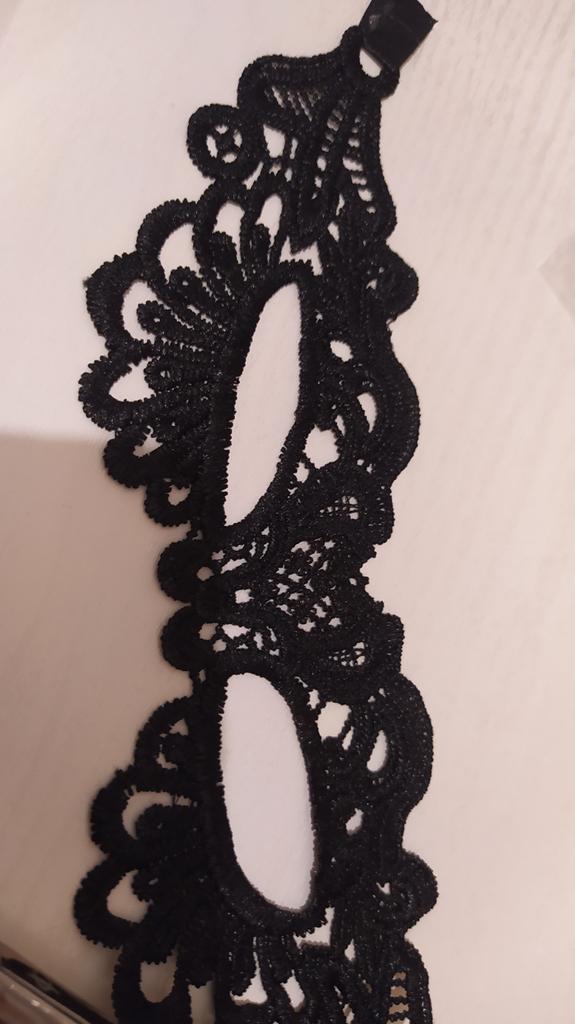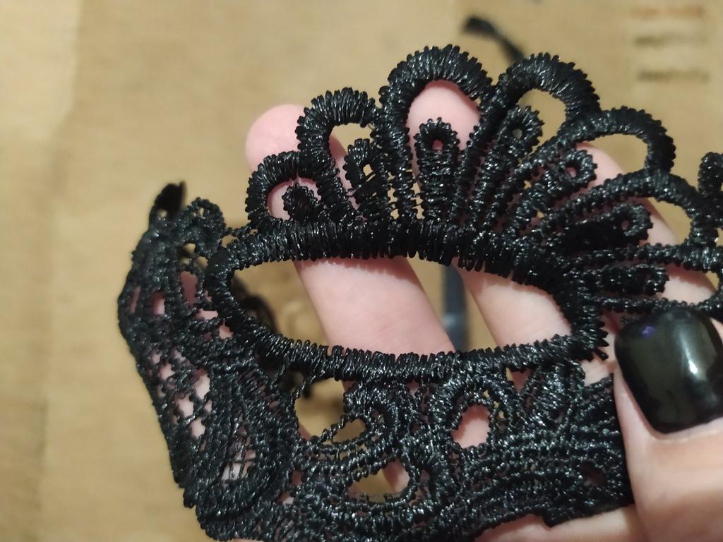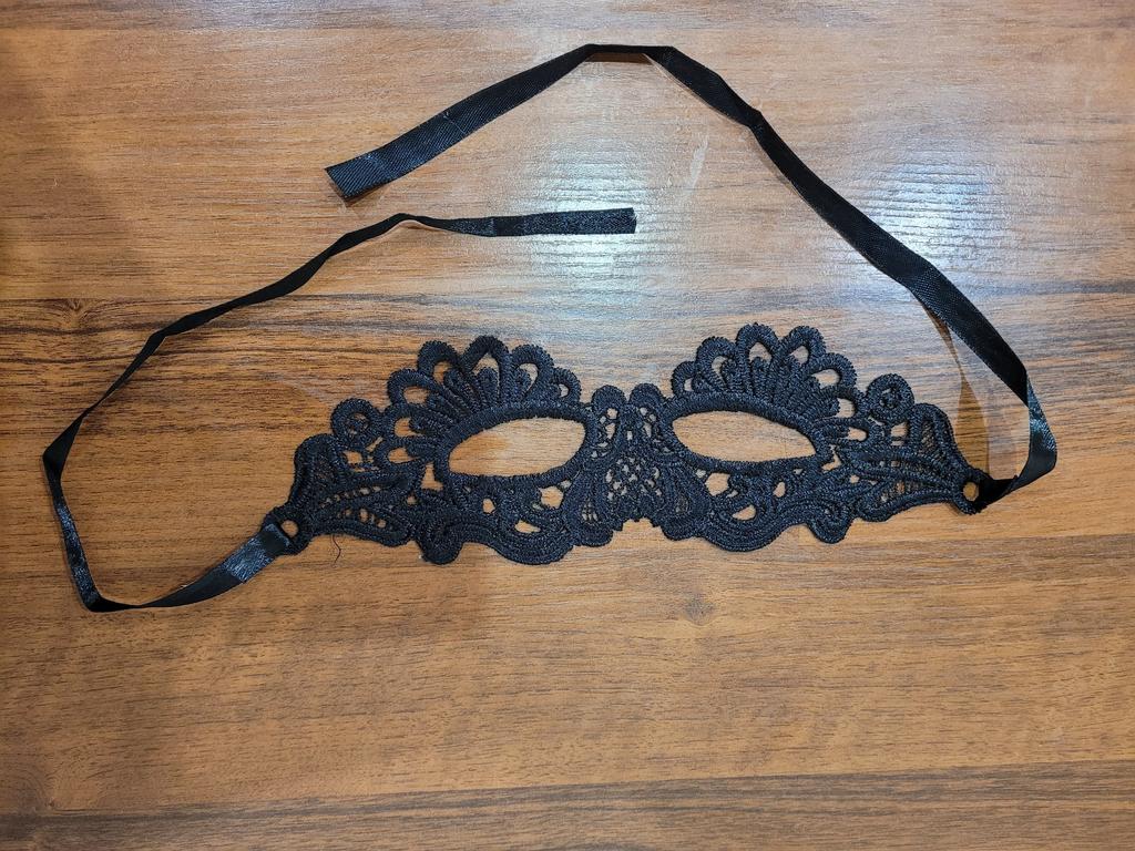 Bella maschera con cravatte. Il pizzo è ben fatto, i fili non sporgono. Grazie!