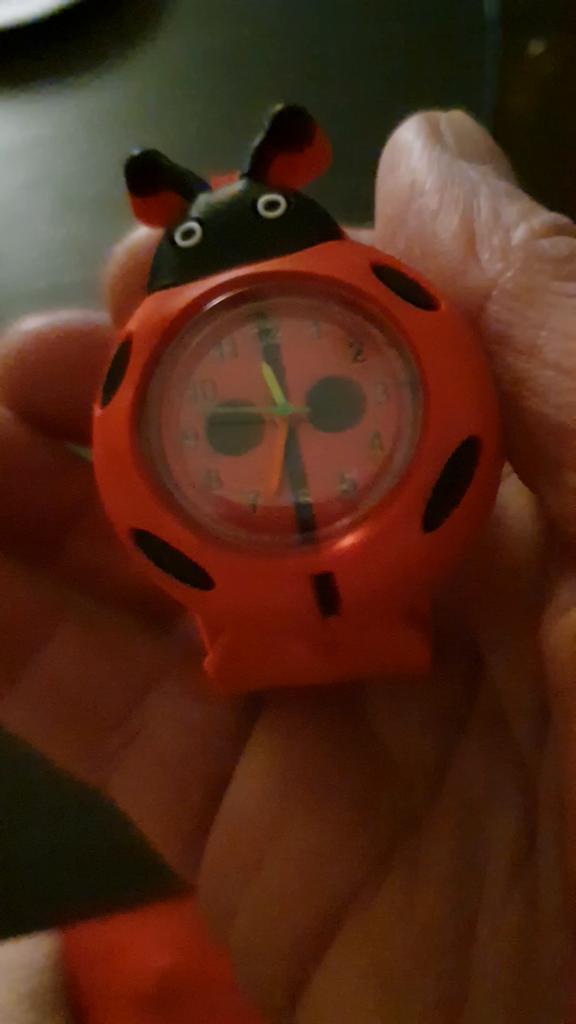 L'orologio si presenta molto bene, funziona bene, bisognava toglierlo dalla custodia della coccinella e accenderlo. Grazie al venditore