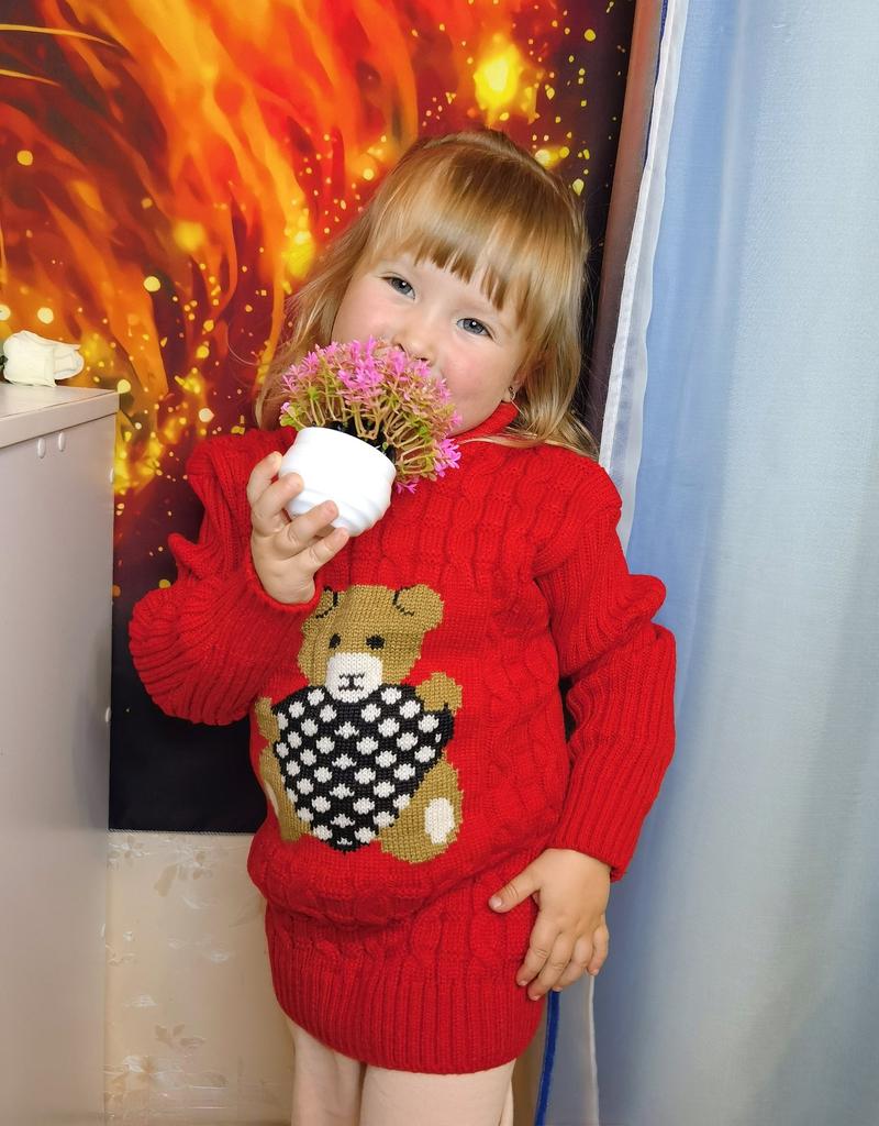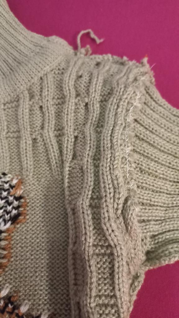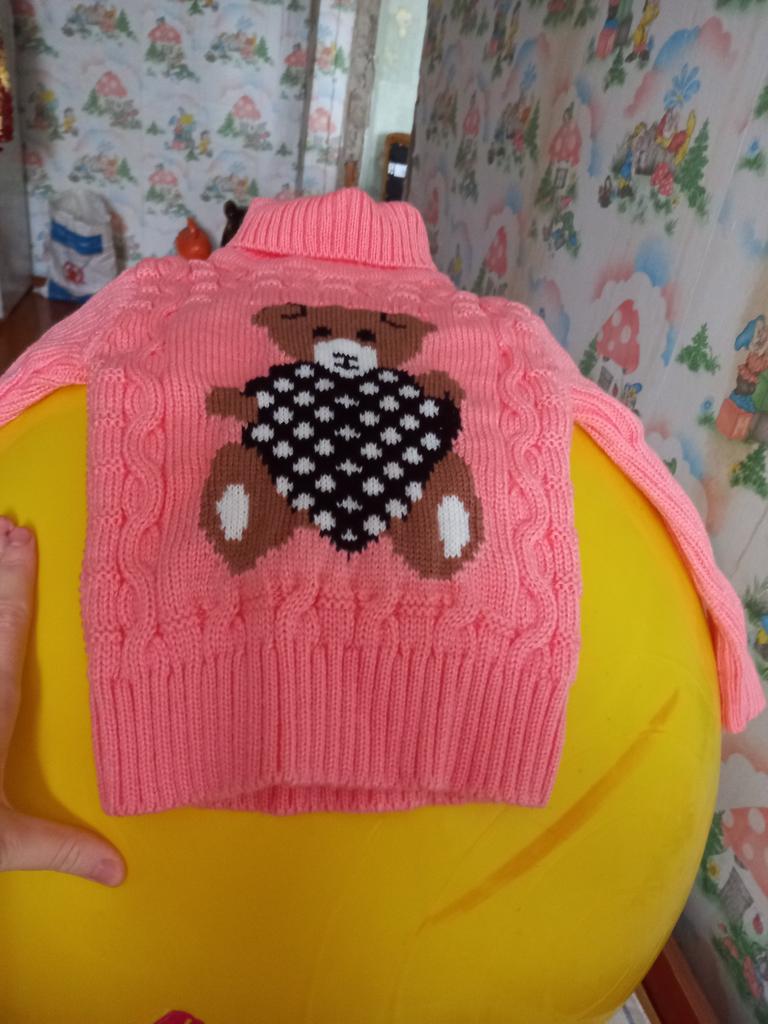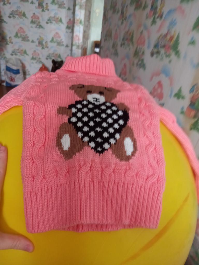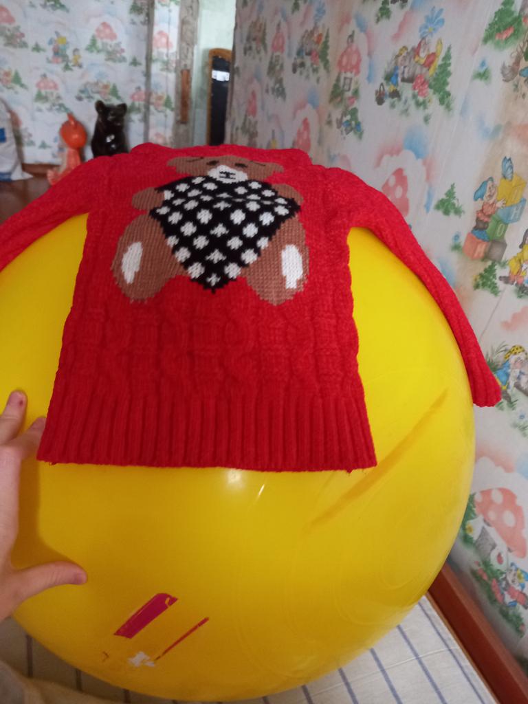 Mi è piaciuto molto il maglione. Ad un'altezza di 102-104 cm (non posso misurarlo con certezza), si adatta perfettamente. Colore caldo, denso, luminoso, saturo. sono molto soddisfatto)