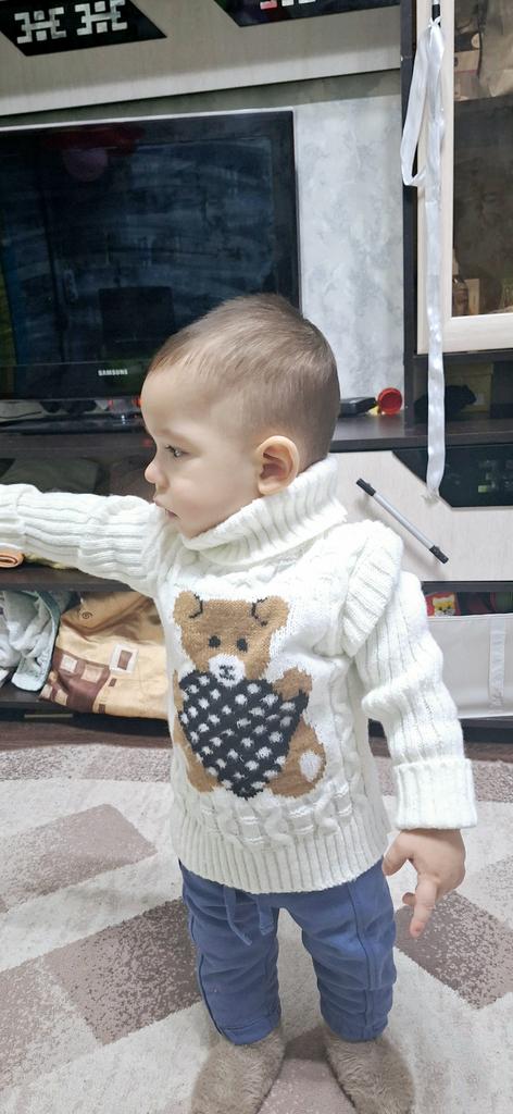 Ho ricevuto un maglione per mio nipote in un pacco collettivo. Morbido, carino, sembra molto bello. Per 3-4 anni sarà perfetto. Consiglio per l'acquisto.