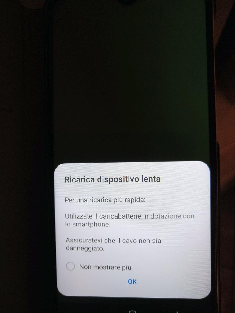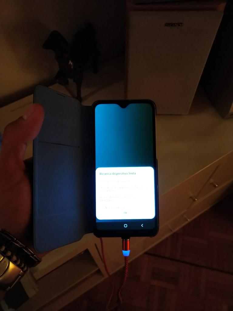 Purtroppo quando viene collegato al telefono e non carica. E quando sembra che funziona esce un messaggio di carica lenta. 🤔🤨🙁