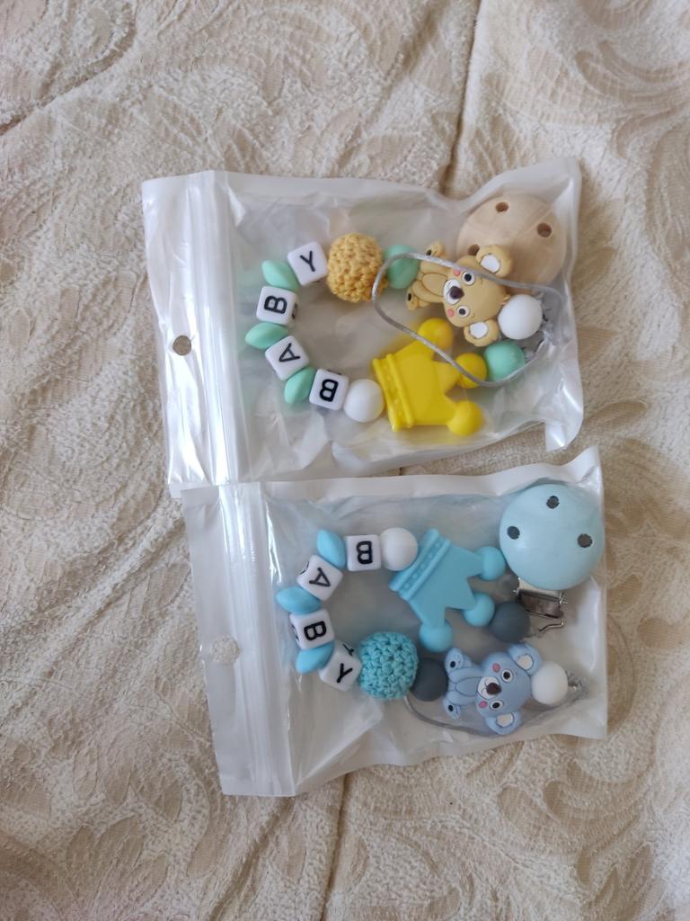⭐️ Catene finte ⭐️ ⭐️Tempi di consegna: 3 settimane ⭐️Colore: grigio e rosa ⭐️ Vantaggi: entrambe le catenelle per ciuccio sono super lavorate e sono realizzate in silicone, sembrano super carine e hanno una grande lunghezza . ⭐️Svantaggi: non ne sono ancora a conoscenza.