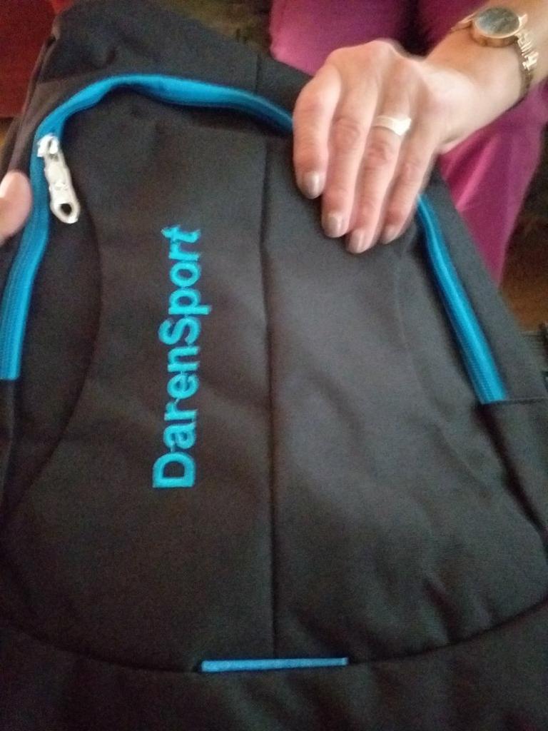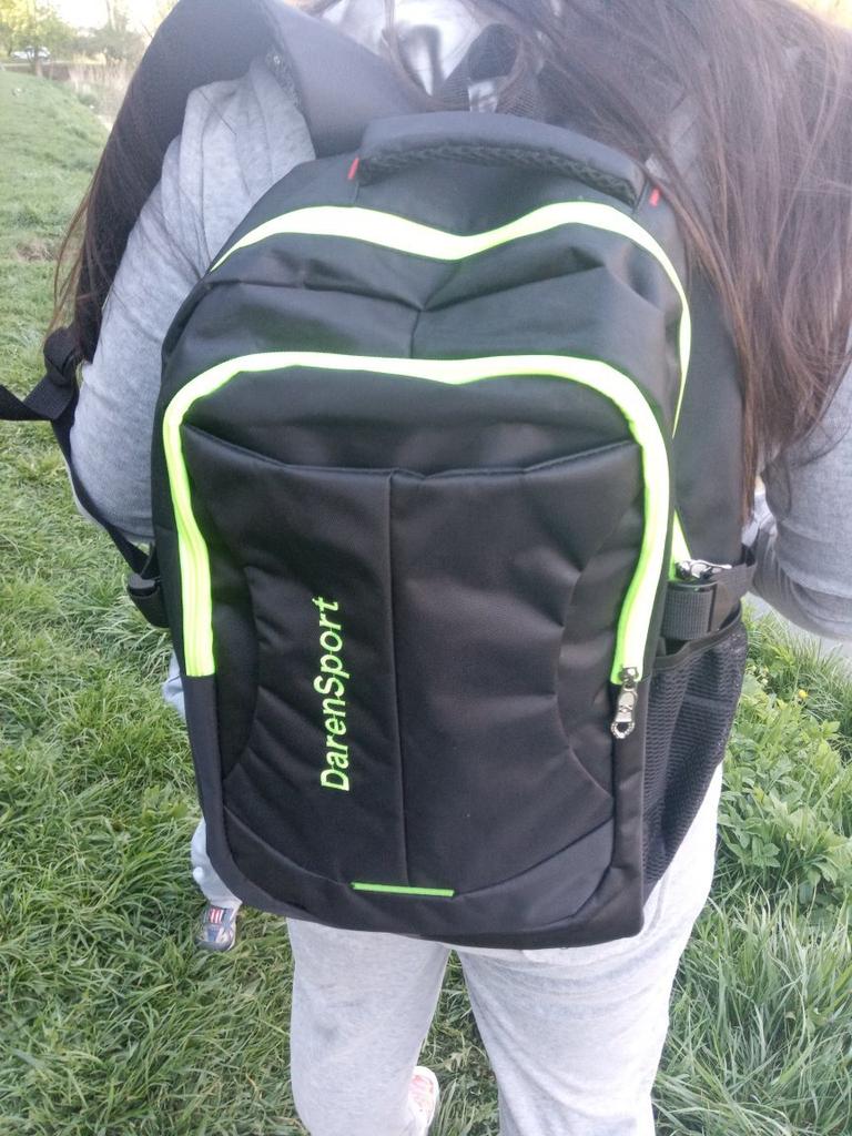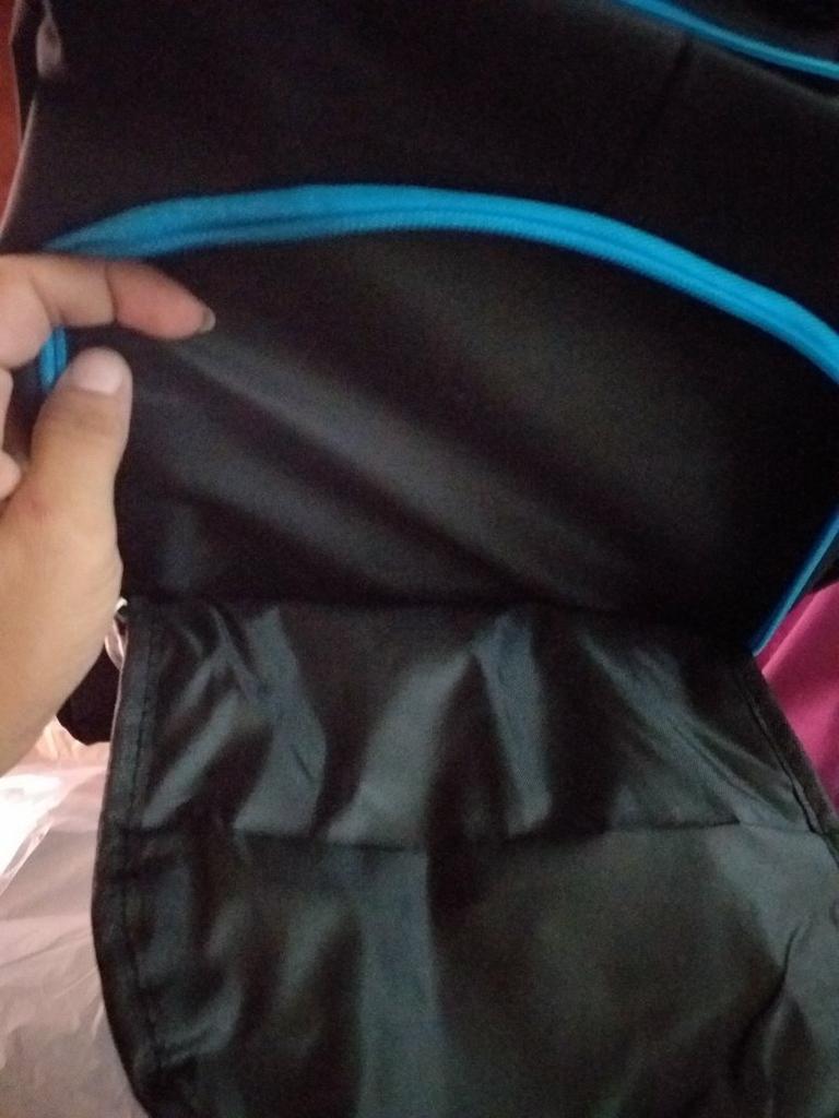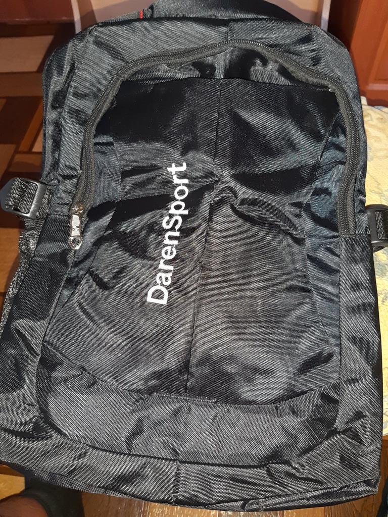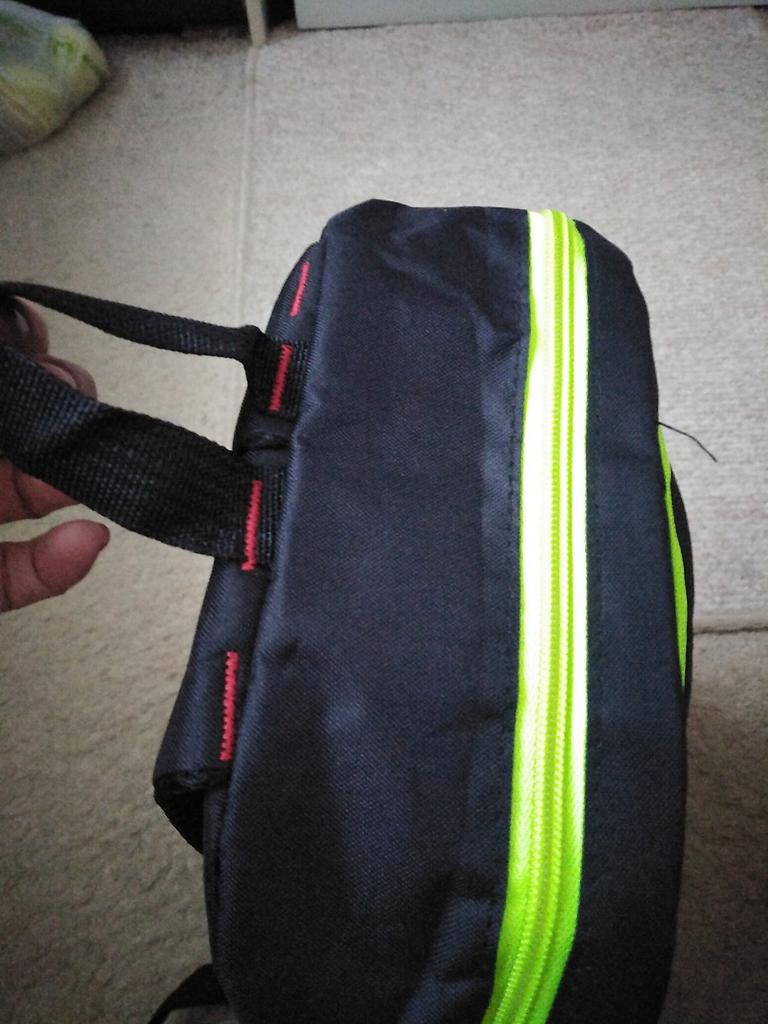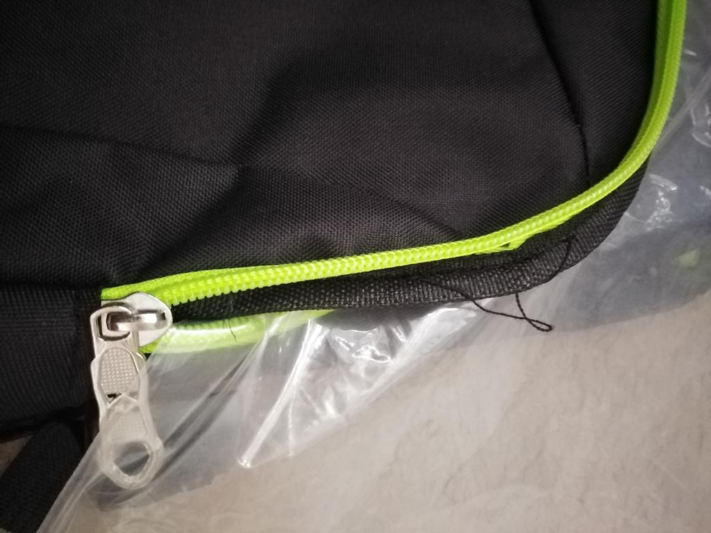 È arrivato in tempo, il tessuto è buono, cucito bene, due scomparti con cerniera, 2 tasche a rete laterali. tutto fantastico consiglio,