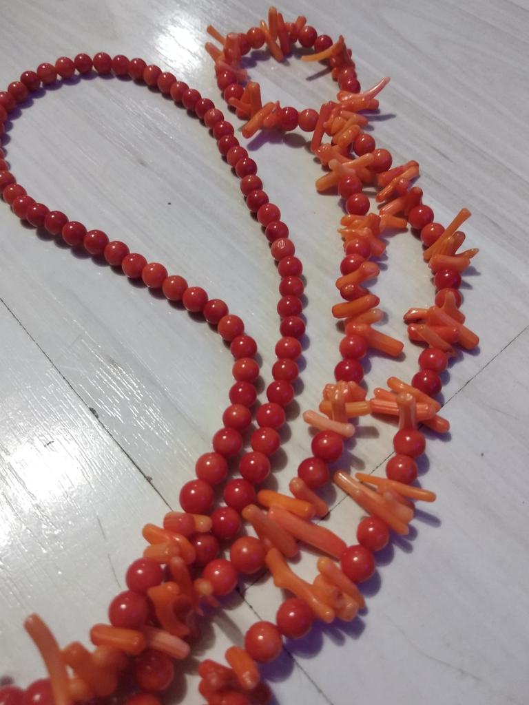 La taglia è piccola e servono due fili, la lunghezza non basta per il capo, ma i coralli stessi sono normali, si possono acquistare