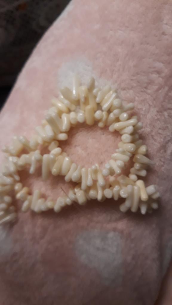 Bellissimi coralli rossi, ma in metà delle perline i fori sono troppo piccoli. L'ago da perline non passa. Il pacco è arrivato abbastanza velocemente.