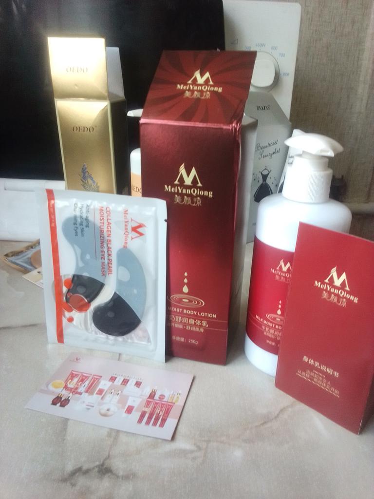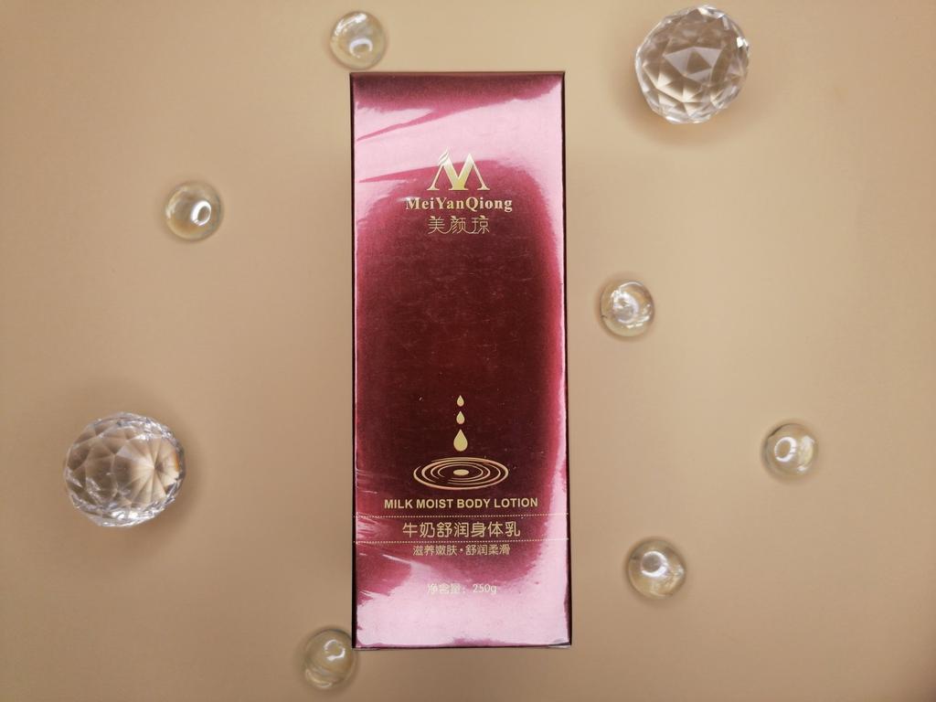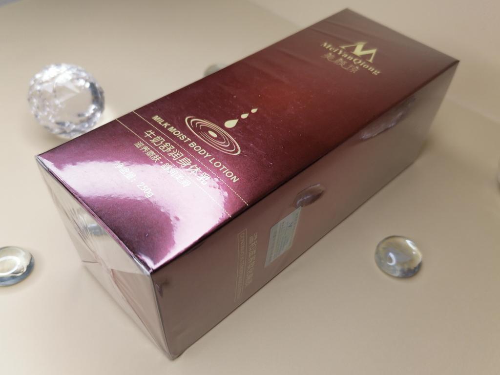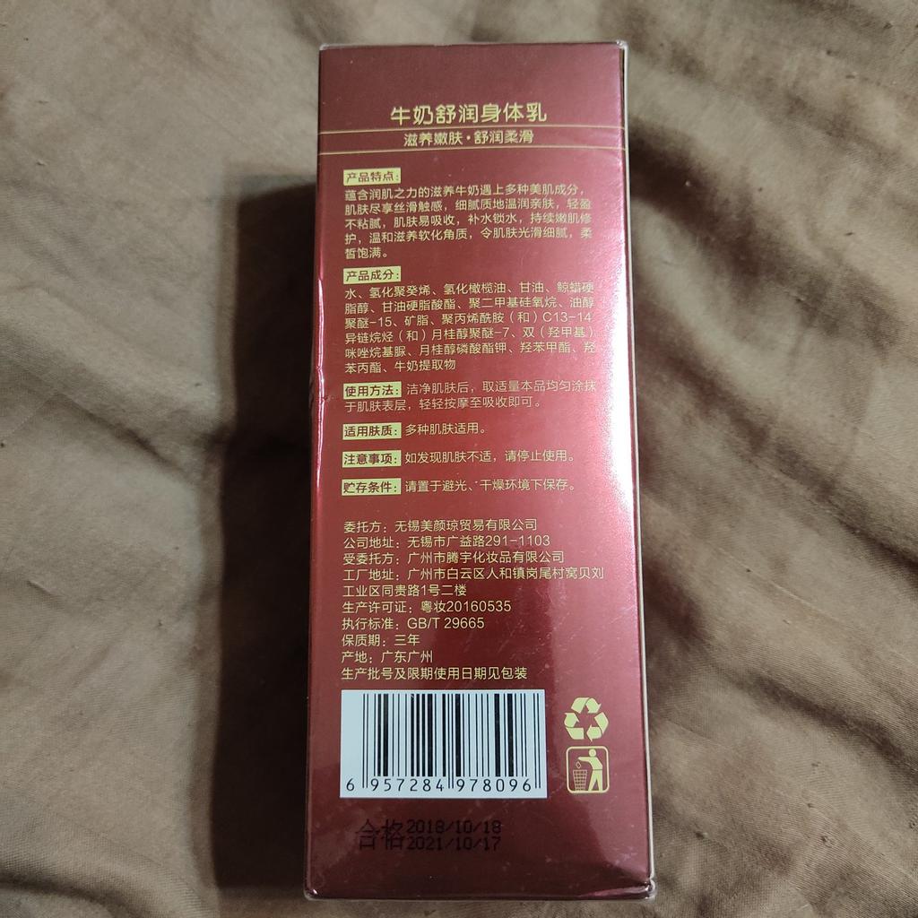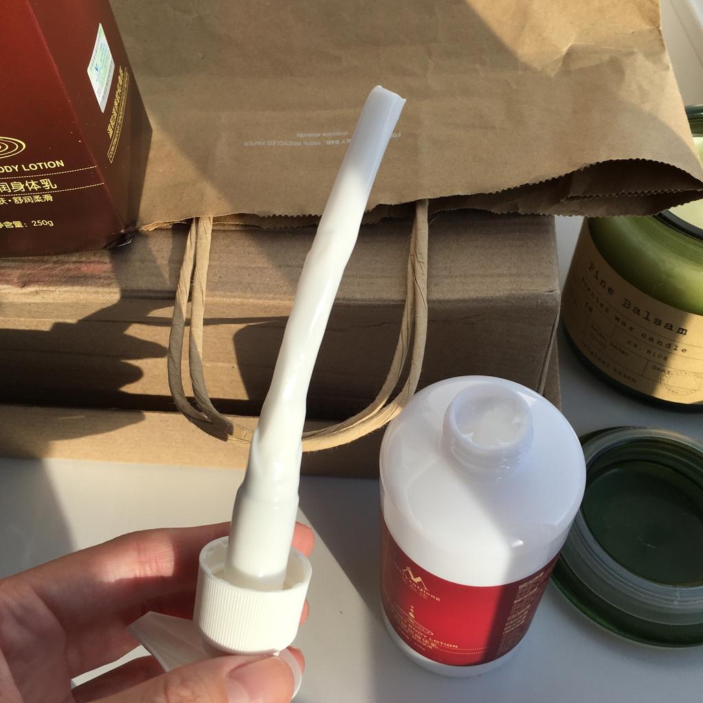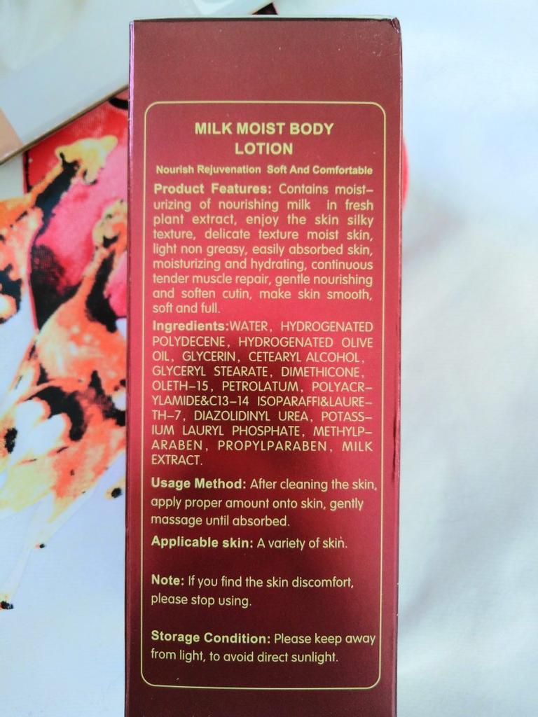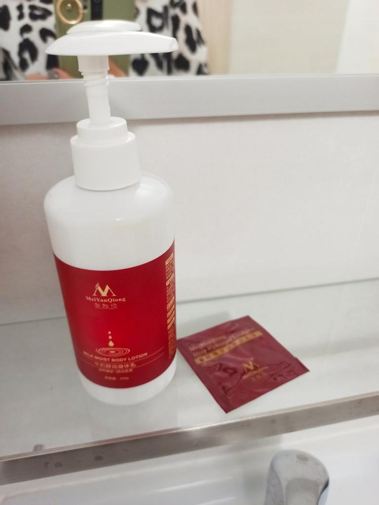 Lozione per il corpo Marca: MeiYan Qiong ⭐⭐⭐⭐⭐ Mi piacciono i prodotti di questo marchio. E questo è diventato uno dei miei prodotti preferiti tra questi. La consistenza della lozione per il corpo è così liscia come una consistenza setosa. La mia pelle lo beve letteralmente! Ha un odore molto buono come un profumo di latte. La lozione per il corpo è adatta a tutti i tipi di pelle e a tutto il corpo compreso il collo. Penso che se puoi usarlo anche per il viso se hai la pelle secca. Mi piace che il contenitore abbia il dispenser. È molto facile e igienico. L'importo netto è molto grande 250 gr.