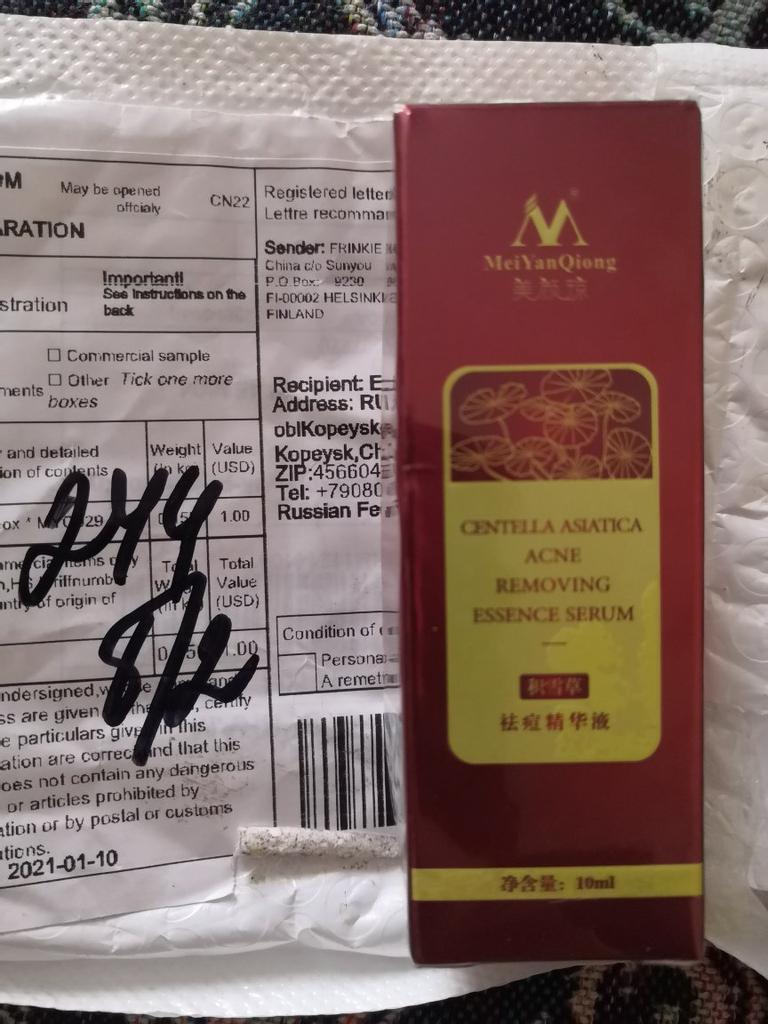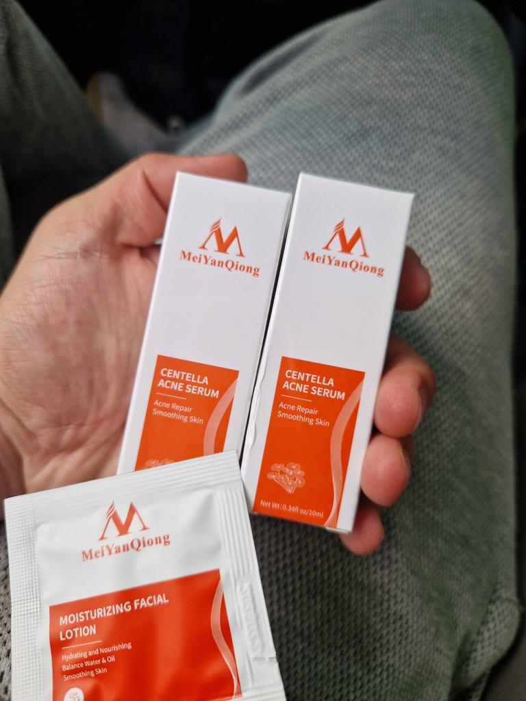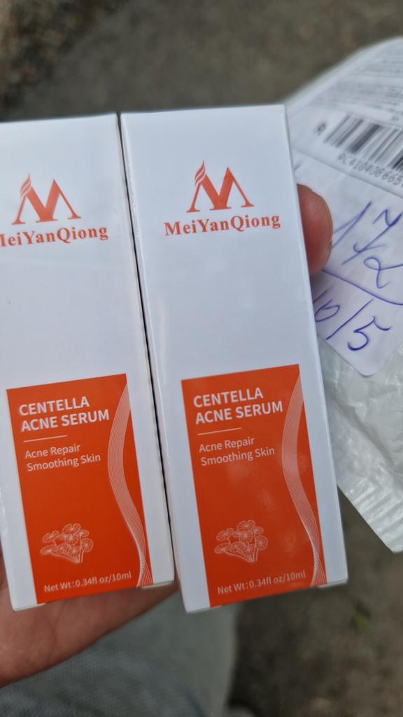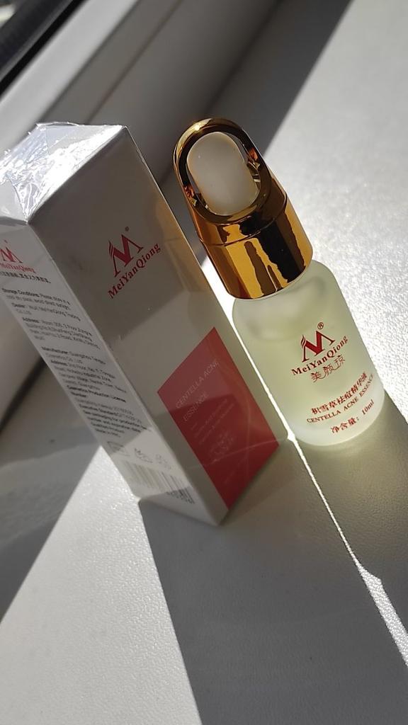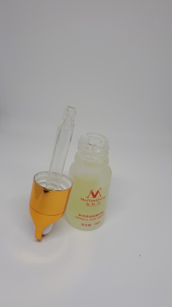Siero per l'acne alla Centella Asiatica 💮 Marca: MeiYan Qiong Questa è la mia seconda bottiglia 😁. Te l'ho detto... ne ordinerò un altro una volta che l'avrò finito... In dermatologia la Centella asiatica viene utilizzata nel trattamento di piccole ferite, ferite ipertrofiche oltre che di ustioni, psoriasi e sclerodermia... A scopo cosmetico, la Centella asiatica viene utilizzata come composto attivo nei preparati per la cura della pelle perché è antiossidante, antinfiammatorio, anticellulite e attività antietà. Come usare: Dopo aver pulito il viso, applica 2-3 gocce sulle aree che presentano l'acne. Quindi applica la tua crema regolarmente. La quantità totale è di 10 ml