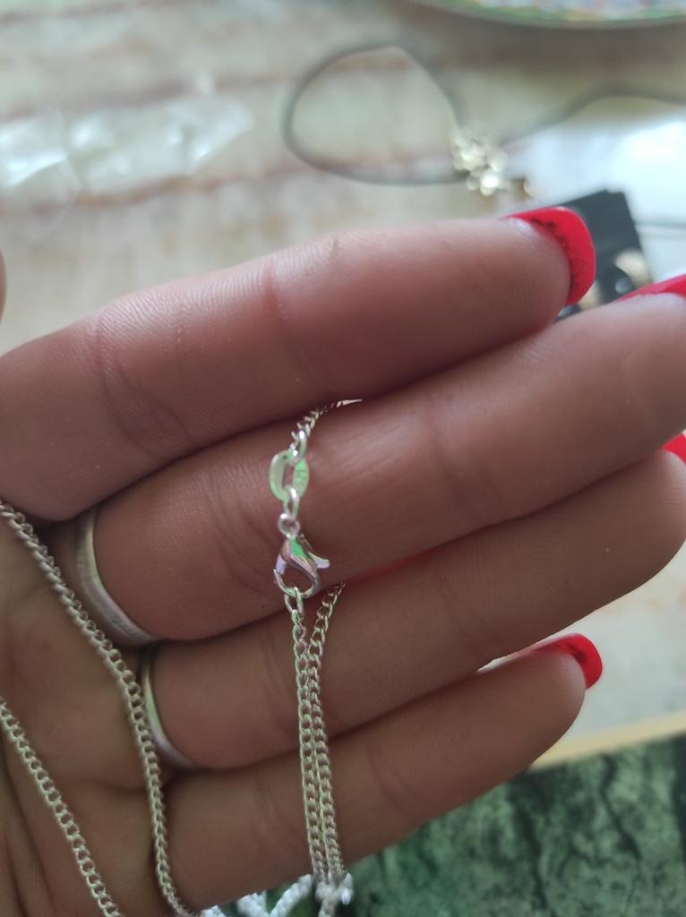 Il secondo prodotto è una catena in argento 925, il campione è sulla chiusura, la catena stessa è di lunghezza ordinata e corrisponde all'ordine, l'ho comprata come regalo, ma le circostanze sono cambiate un po' e la catena è rimasta con me ,,, Niente, non chiede cibo, aspetterà il suo momento ,,, consiglio il venditore, il prodotto è di alta qualità ,,,