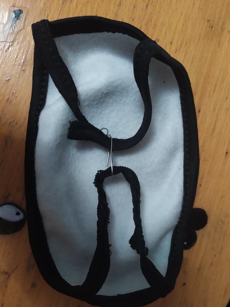 La stampa è decentrata e obliqua. La cucitura su una delle cinghie si è scucita nel momento in cui ho indossato la maschera. Anche la qualità di stampa in sé non è delle migliori: per qualche motivo i colori non sono uniformi.