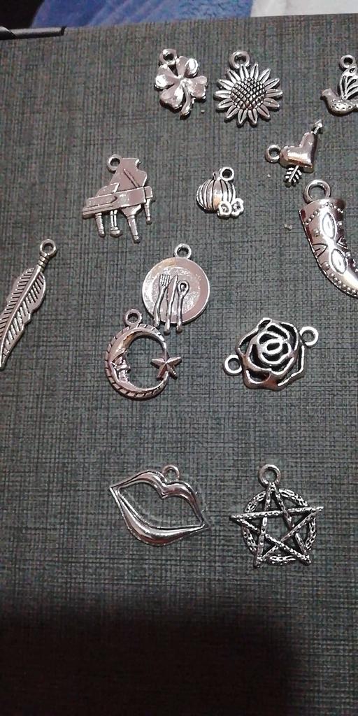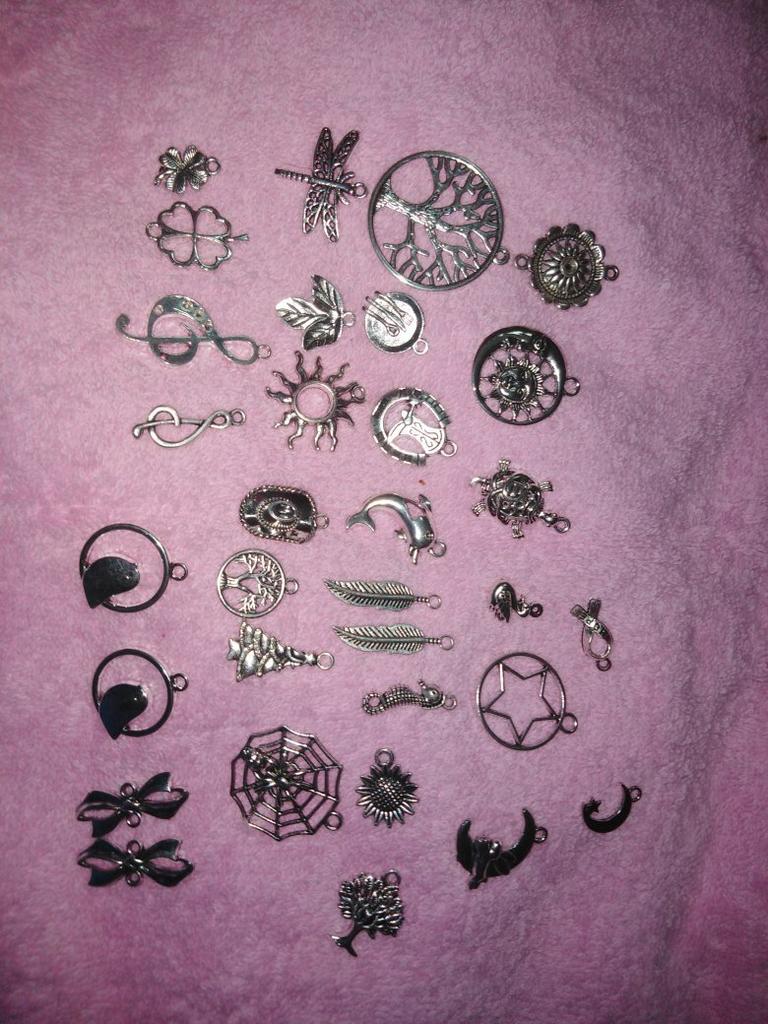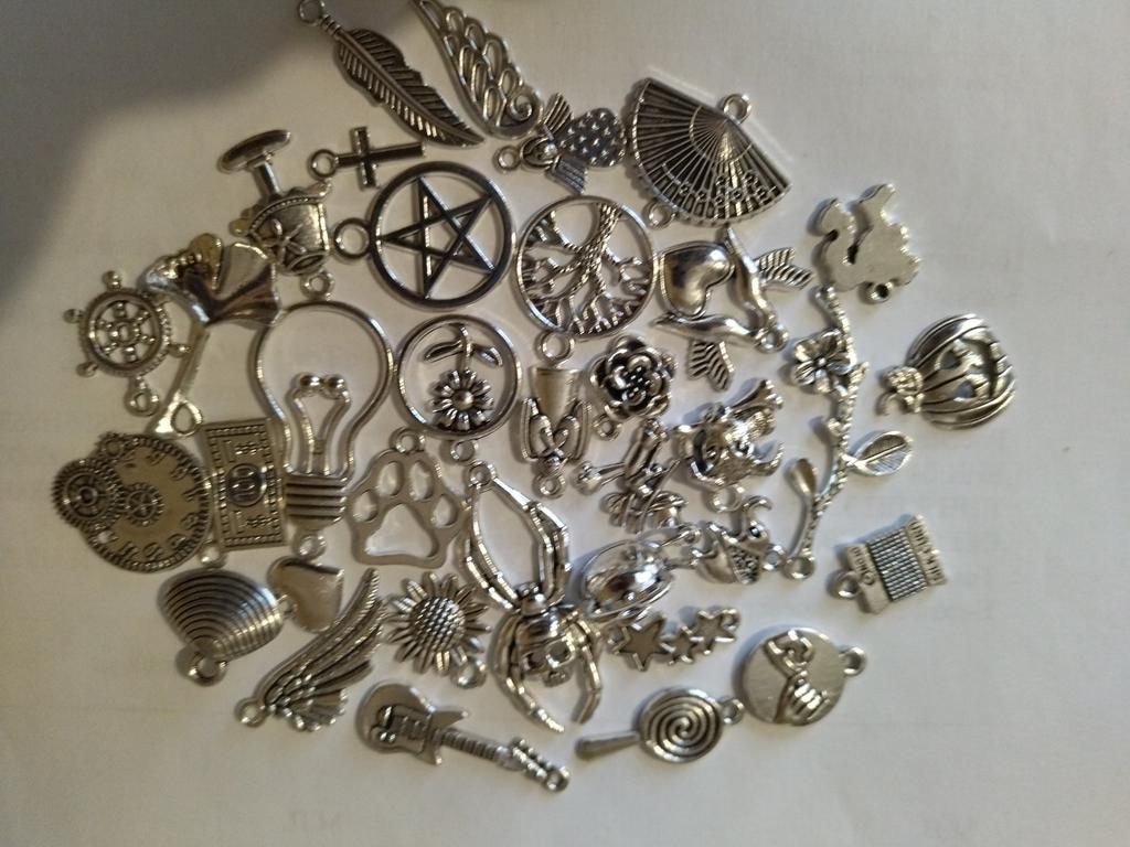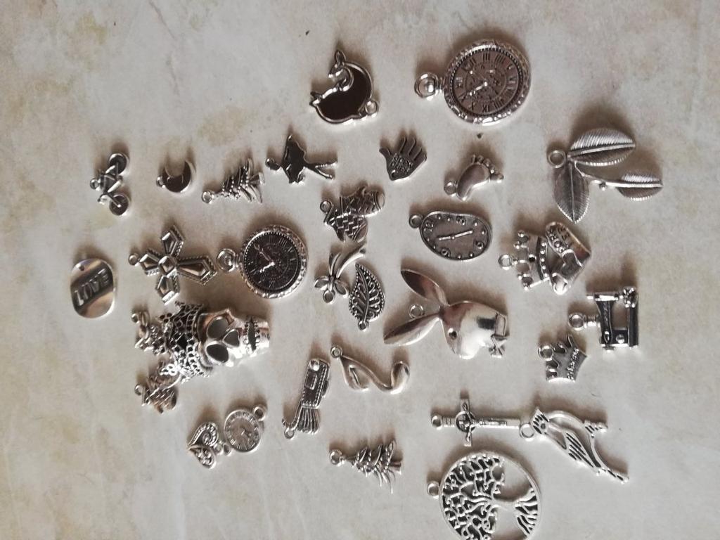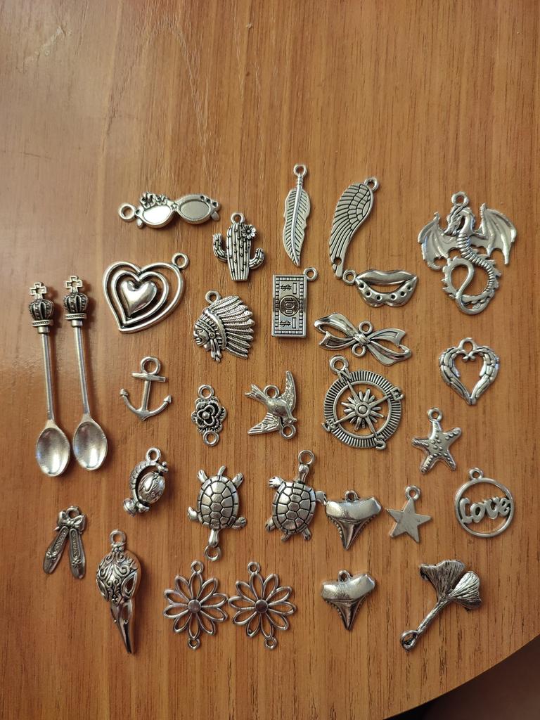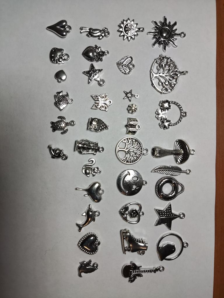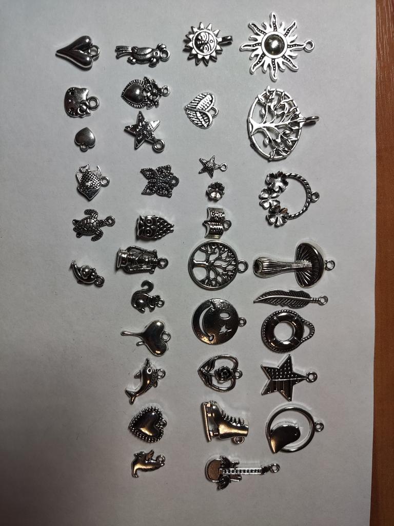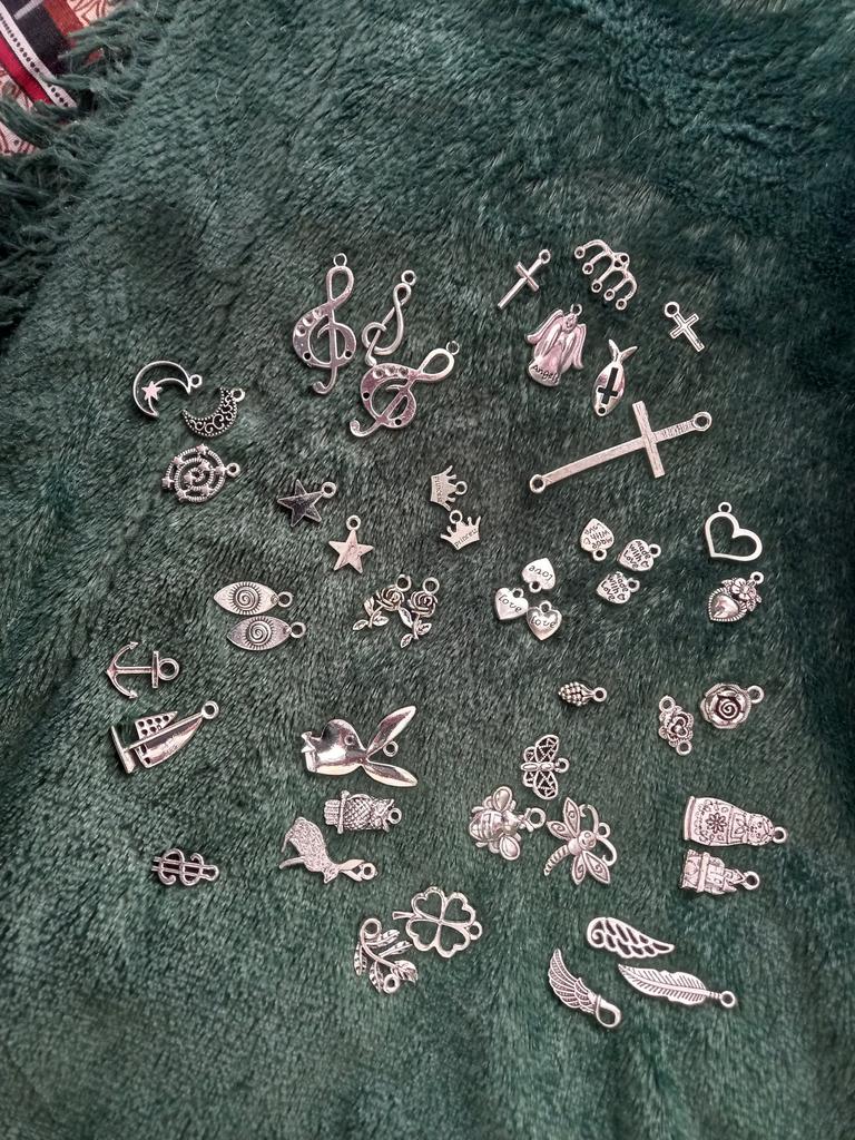 Ciondoli in metallo, tonalità argento perfetta, diverse dimensioni e forme. Un ringraziamento speciale per la chiave di violino