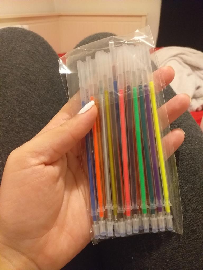 L'ho comprato con l'intenzione di ottenere le penne complete, ma sono arrivate le ricariche, ma non mi importava!!i colori erano gli stessi delle mie aspettative!!