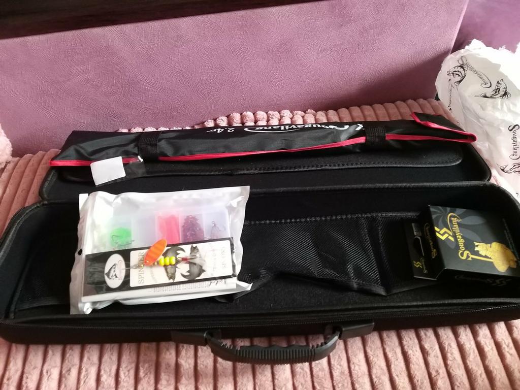È arrivato molto velocemente, ben imballato, la borsa per il trasporto con buona presenza. La borsa ospita altri piccoli attrezzi da pesca. tutto come da foto. Un piccolo incidente con la canna che il venditore ha risolto velocemente. Molto serio. Comprerò di nuovo