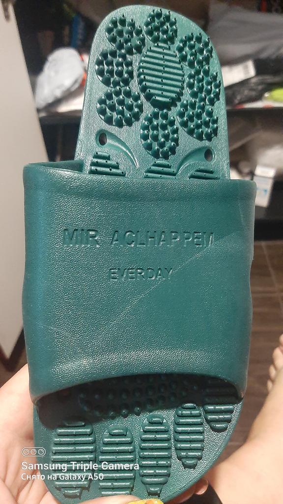 Come in foto) Soddisfatto))) Morbido, bello... ma poco odoroso... ...dopo poco tempo l'odore è scomparso) ... Io uso. Tutto è carino. Se macchiato - può essere facilmente lavato. Massaggio. Si adattano ovunque dove le pantofole in tessuto non sono molto adatte.