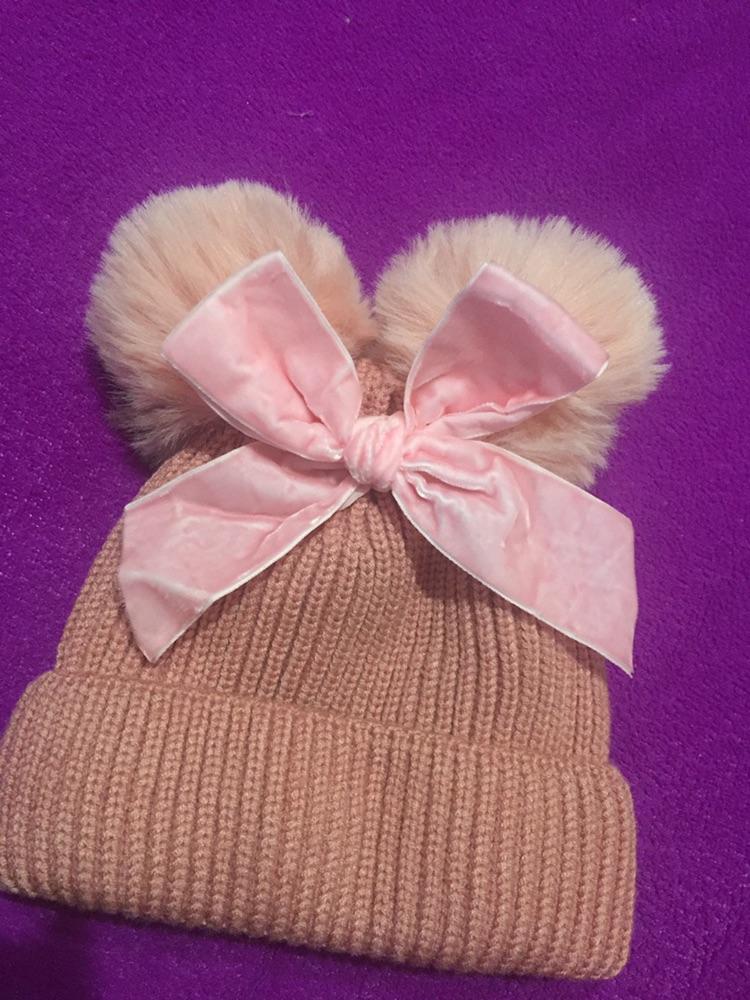 Cappello a cuffia per bambina con doppio pompon Cappello invernale per bambini lavorato a maglia caldo e spesso